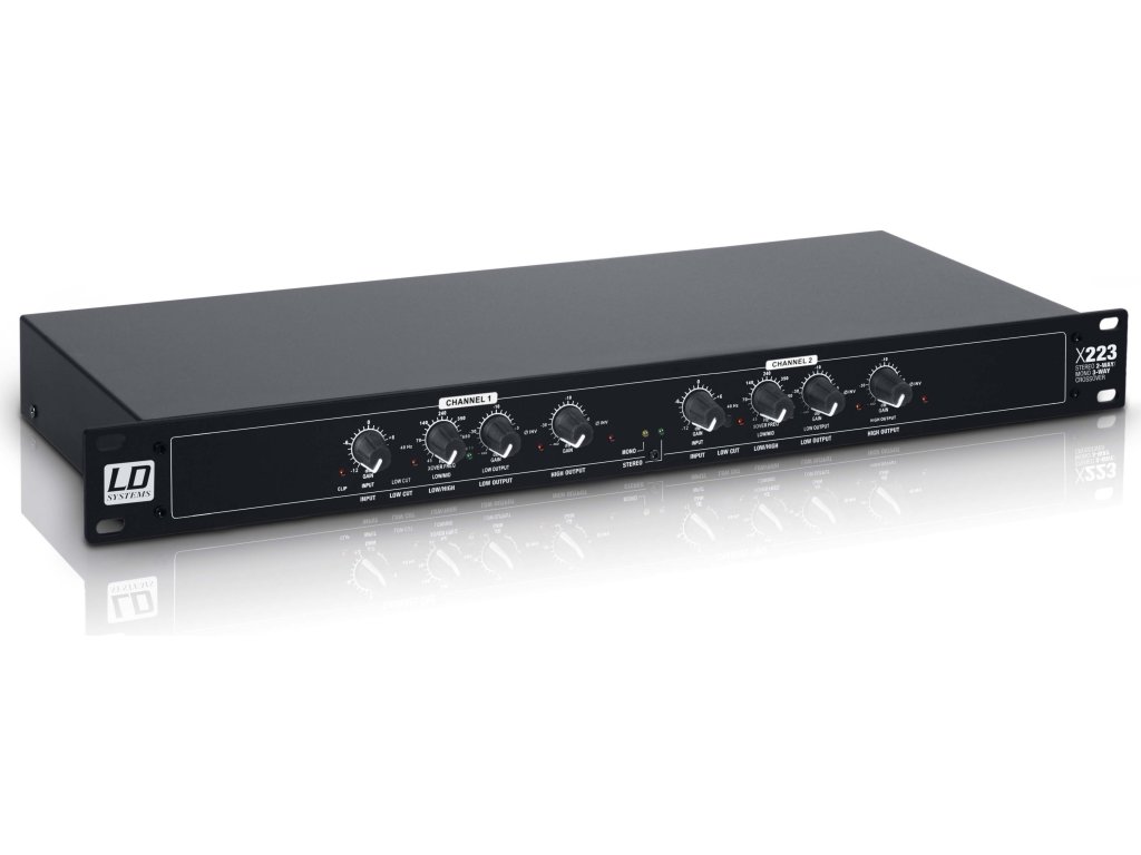 Aktywny crossover zapewnia monofoniczne wyjście subwoofera, regulowaną częstotliwość podziału dla każdego kanału, regulowane LF / HF, wzmocnienia wejściowe, przełącznik odwrócenia fazy, przełączane filtry górnoprzepustowe 40 Hz i symetryczne wyjścia.