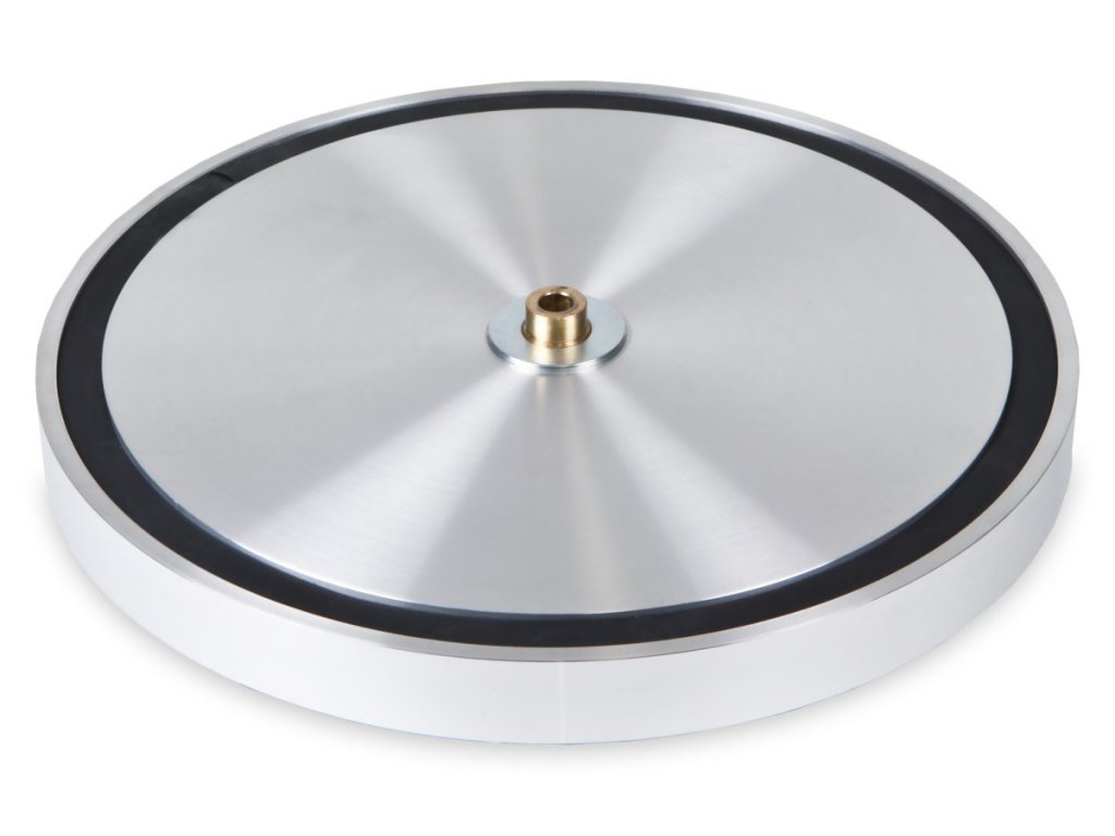 Podstawa z MDF jest wypełniona metalowym granulatem, co gwarantuje wysoką masę urządzenia, a jednocześnie doskonałą odporność na rezonanse. Dzięki magnetycznym nóżkom gramofon dosłownie lewituje i jest doskonale oddzielony od otaczających wibracji. Talerz jest tłoczony z kilku warstw, a oś jest osadzona w ceramicznym łożysku kulkowym z magnetycznym zawieszeniem.