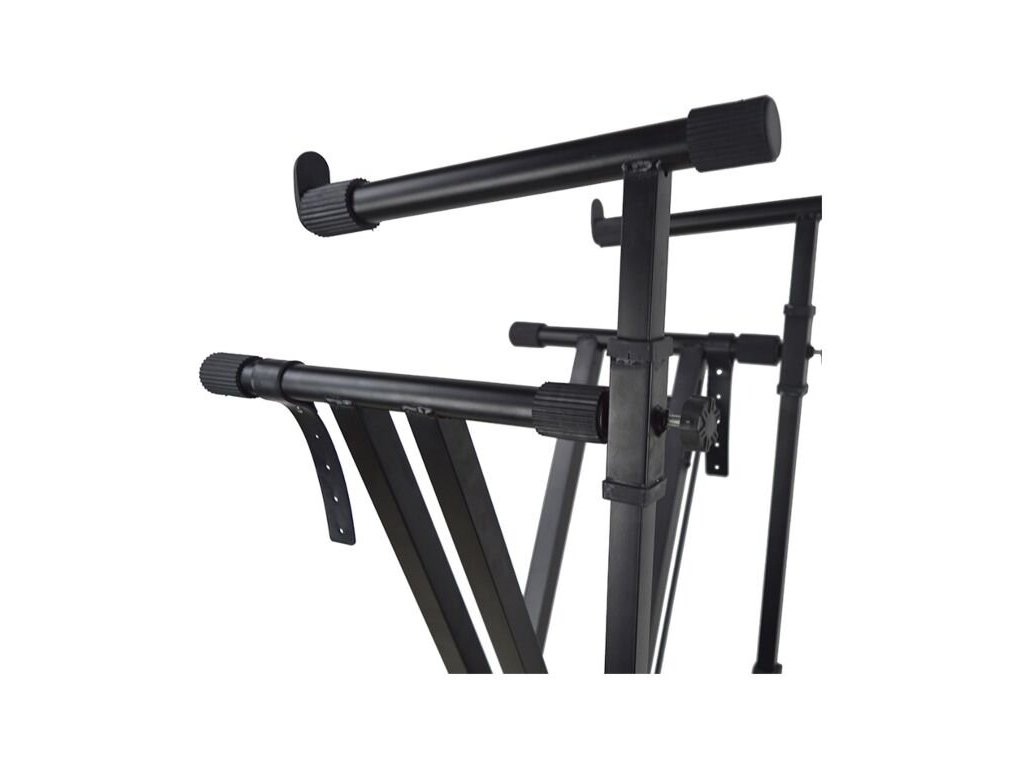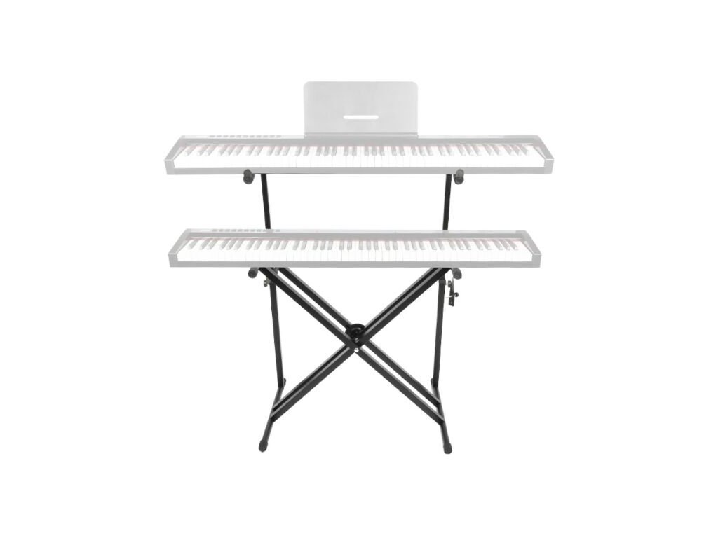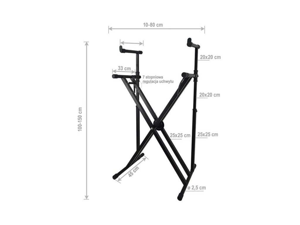 Jeśli szukasz solidnego, podwójnego stojaka do keyboardu, pianina cyfrowego lub innego rodzaju instrumentu klawiszowego, który wytrzyma duże obciążenia, a jednocześnie będzie stabilny i zapewni duży komfort podczas gry, wybierz X6 od renomowanej marki STAND4ME. Rama stojaka wykonana jest z żelaznych profili, które zapewniają, że cała konstrukcja jest bardzo solidna. Konstrukcja górnych podstawek została zaprojektowana tak, aby nie spadły nawet podczas intensywnej gry na klawiszach.
