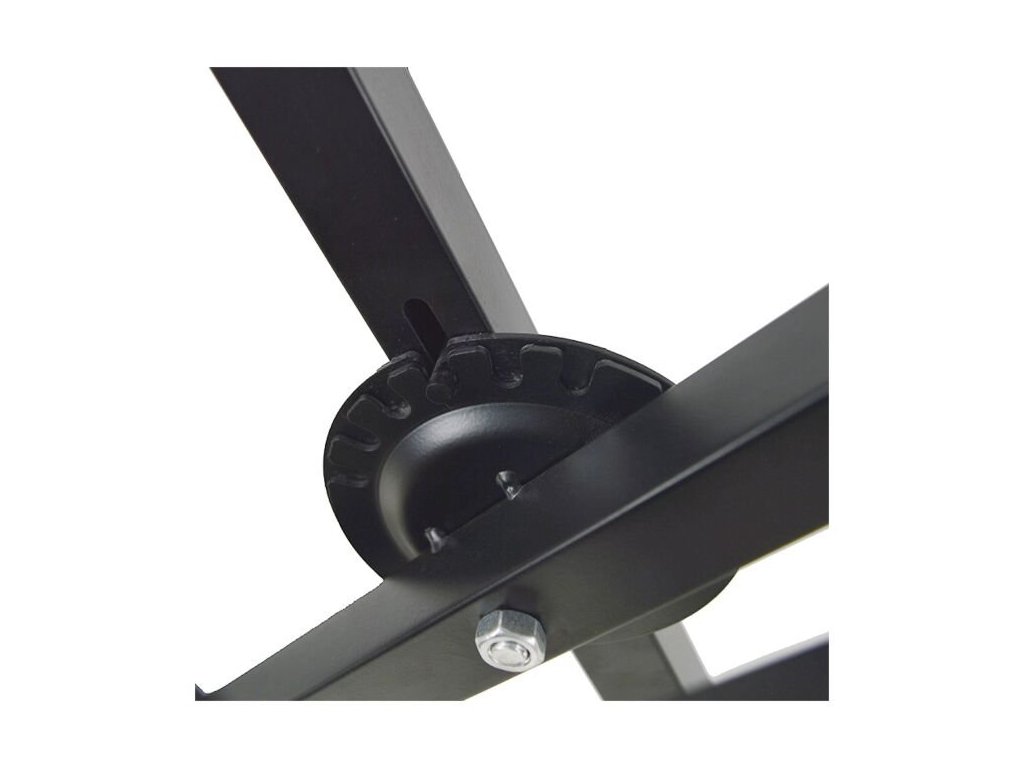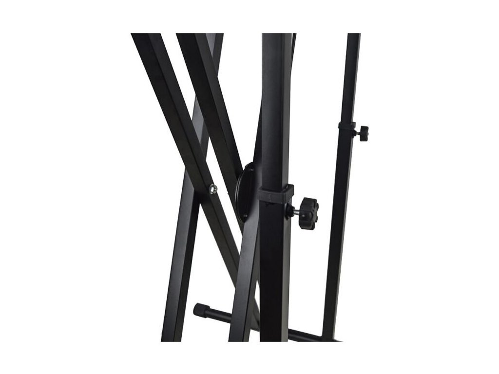 Statyw klawiszowy STAND4ME X6 posiada 7-pozycyjną regulację wysokości od 104 do 150 cm, co umożliwia grę na instrumentach w pozycji siedzącej i stojącej. Szerokość ramy jest również regulowana, co pozwala na umieszczenie na niej mniejszych klawiszy. Konstrukcję można również łatwo złożyć, dzięki czemu jest bardzo wygodna w transporcie i przechowywaniu.