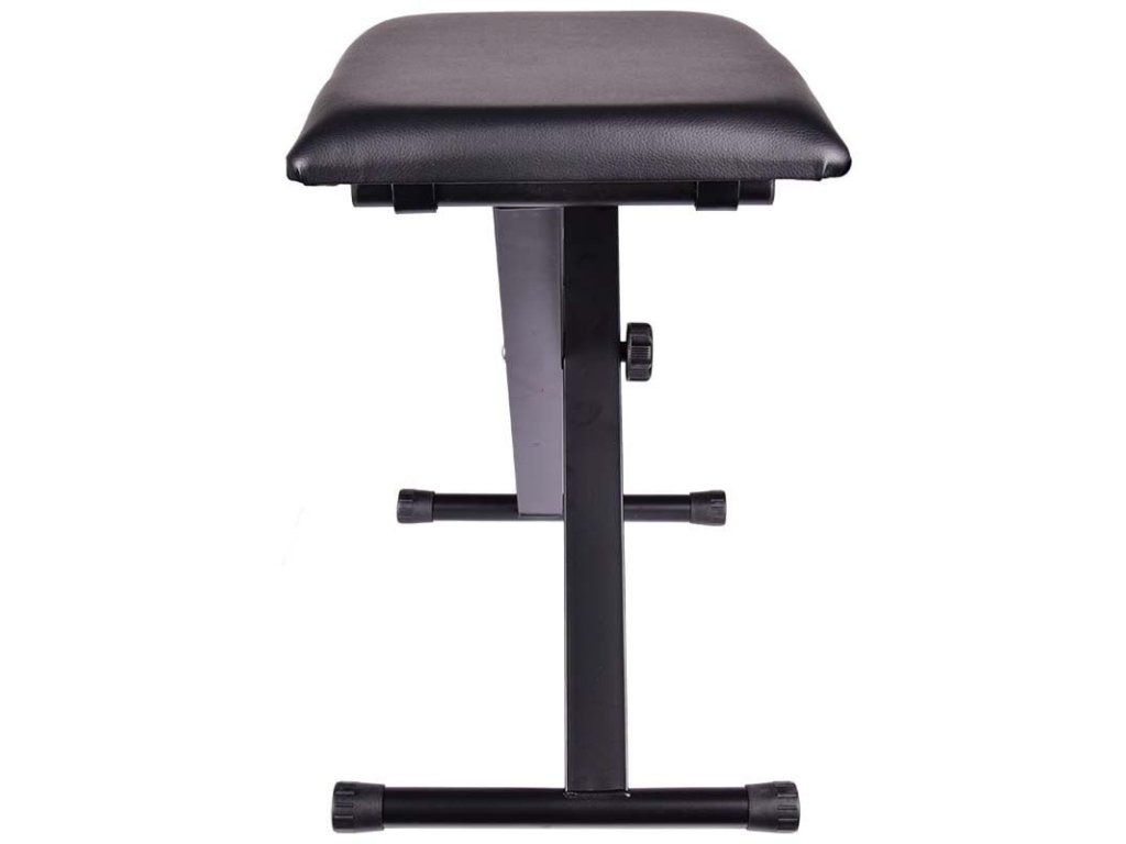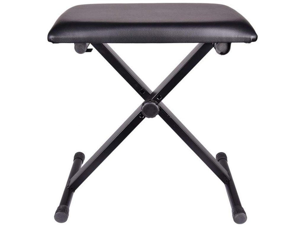 NN XA to solidne, składane siedzisko do pianina, fortepianu lub innych instrumentów klawiszowych, o konstrukcji w układzie krzyżowym (X). Jego rama jest w całości wykonana ze stalowych profili i rur malowanych czarną farbą proszkową, dzięki czemu jest odporna na zarysowania i korozję. 3-punktowa regulacja wysokości zapewnia optymalne ustawienie taboretu dostosowane do indywidualnych preferencji użytkownika, a dwie podłużne nogi gwarantują wysoką stabilność całej konstrukcji. Siedzisko wypełnione jest miękką gąbką techniczną. Jest pokryty czarną skórą ekologiczną, dzięki czemu jest bardzo odporny na ścieranie i łatwy do czyszczenia. Taboret do pianina NN XA to doskonały wybór dla osób poszukujących mobilnej konstrukcji, którą można szybko złożyć, łatwo transportować i przechowywać. Jest to solidny, uniwersalny i stosunkowo niedrogi taboret do pianina.