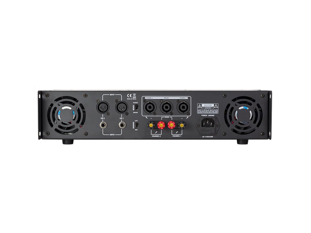 Wzmacniacz ma uniwersalne możliwości podłączenia. Na każdym kanale równolegle połączone są złącza wejściowe (1x XLR, 1x 1/4” Jack TRS). Mogą być używane jako symetryczne lub niesymetryczne wejście lub jako złącza przelotowe przy zasilaniu wielu wzmacniaczy tym samym sygnałem. Wyjścia głośnikowe są wyposażone w złącza Speakon (2x stereo + 1 dedykowane dla trybu Bridge) oraz zaciski śrubowe. Na tylnym panelu znajduje się również przełącznik trybów pracy Stereo/Bridge, przełącznik napięcia w zależności od napięcia w sieci w Twojej okolicy oraz odłącznik uziemienia sygnału, który oddziela płaszcz symetrycznych złączy wejściowych od obudowy wzmacniacza w celu redukcji szumów. Wzmacniacz można również zainstalować w dowolnym 19-calowym racku, a jego elegancka i lekka konstrukcja zapewnia wygodne przenoszenie i transport.