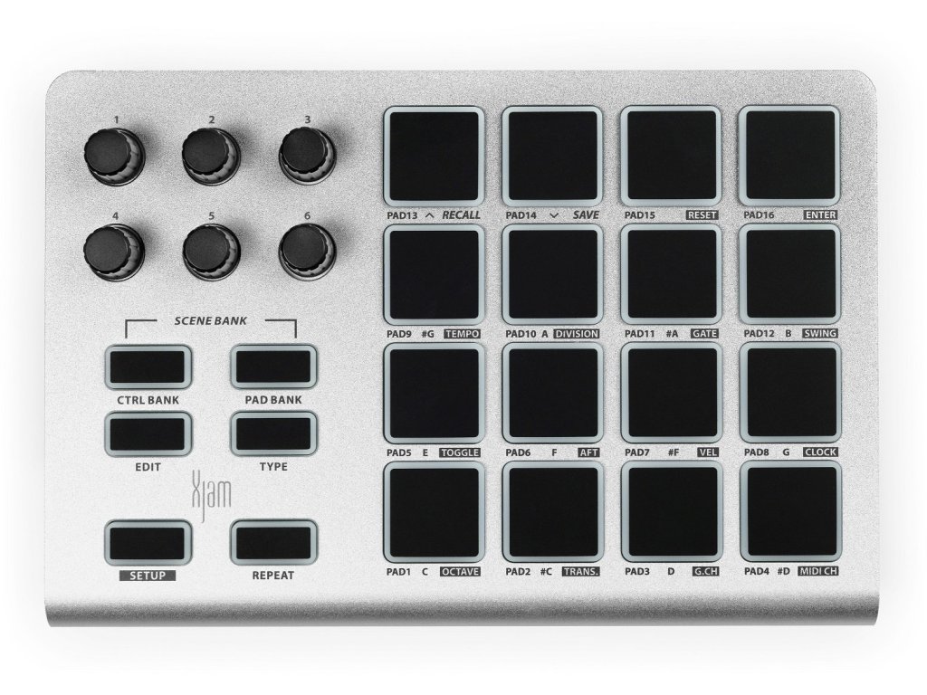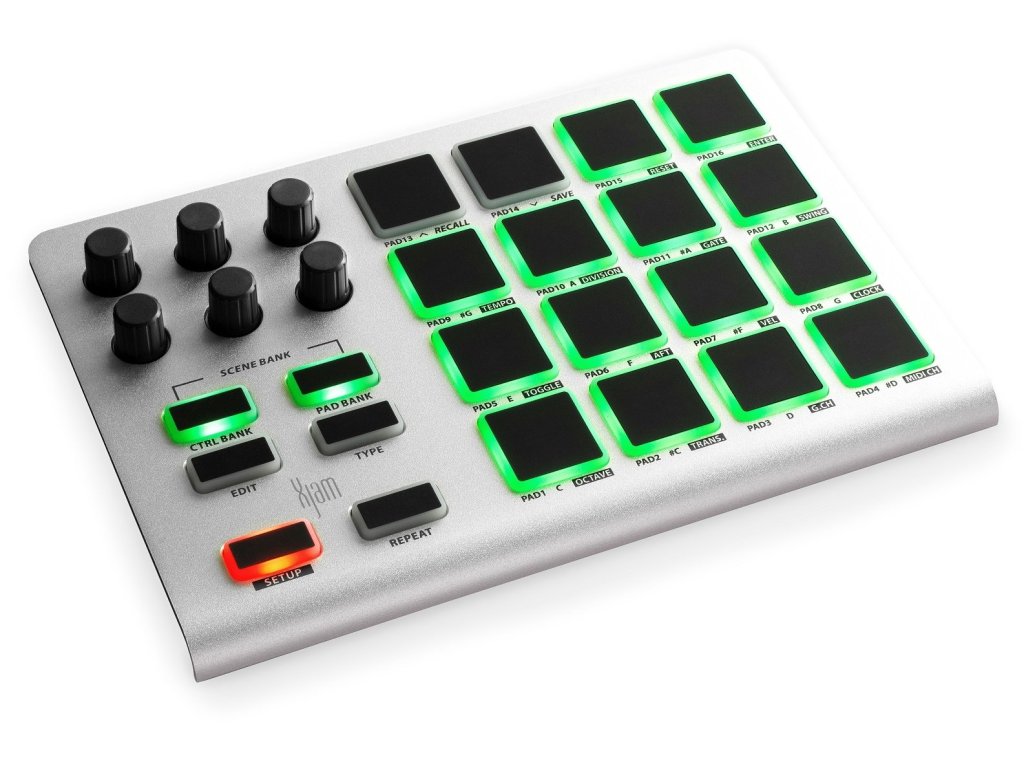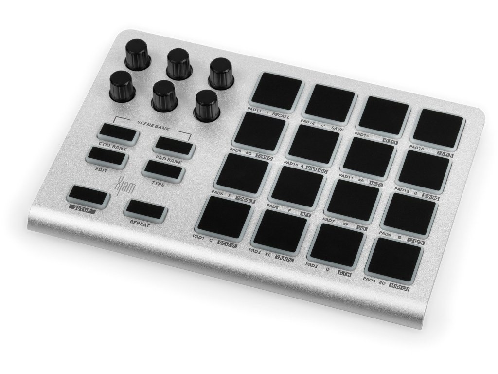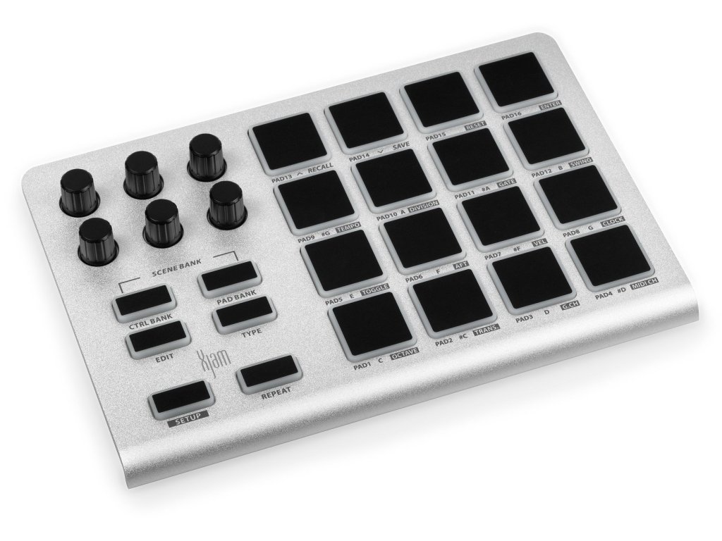 ESI Xjam to mały, w pełni funkcjonalny kontroler MIDI typu plug-and-play. Dzięki solidnej, aluminiowej obudowie Xjam jest doskonale przenośny i idealny do użytku poza studiem, na urządzeniach mobilnych. Z matrycą padów 4x4, 6 nieskończonymi enkoderami i 16 padami zapewnia przyjemne i wyraziste wrażenia z gry. Dodatkowo Xjam oferuje możliwość zapisania do 48 konfiguracji.