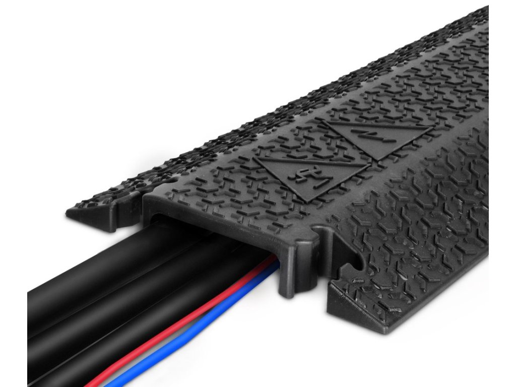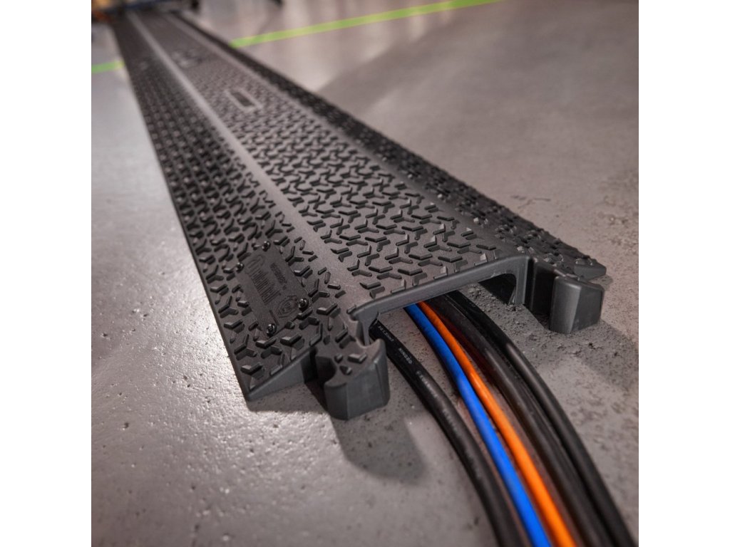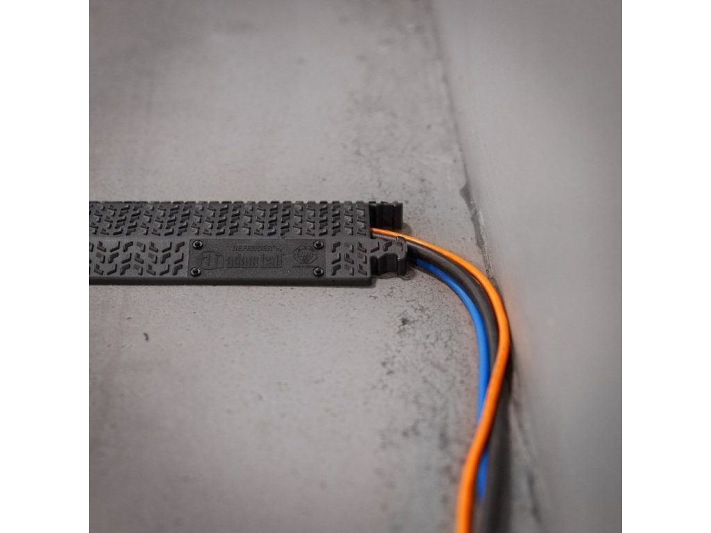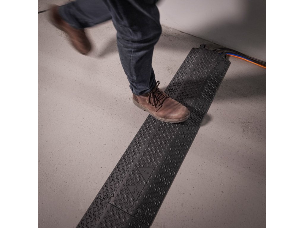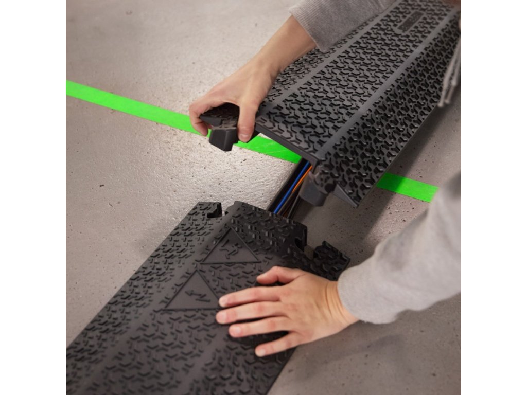 Najazd kablowy DEFENDER® XPRESS idealnie nadaje się do użytku wewnątrz i na zewnątrz budynków, na przykład na wystawach, targach, w centrach handlowych, na scenach, w studiach lub biurach. Kanał kablowy ma wymiary 100 x 30 mm i dlatego może być używany do różnych kabli i węży, na przykład do 30 kabli mikrofonowych lub zasilających lub do 5 węży ogrodowych. Przy nośności ok. 0,5 tony na powierzchnię 20 x 20 cm, najazdy kablowe XPRESS mogą unieść zwykłe samochody, wózki, rowery, wózki inwalidzkie i pieszych.
