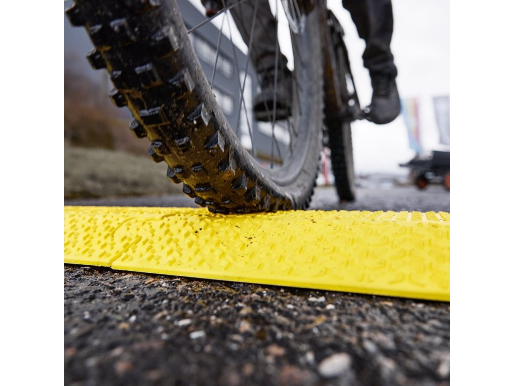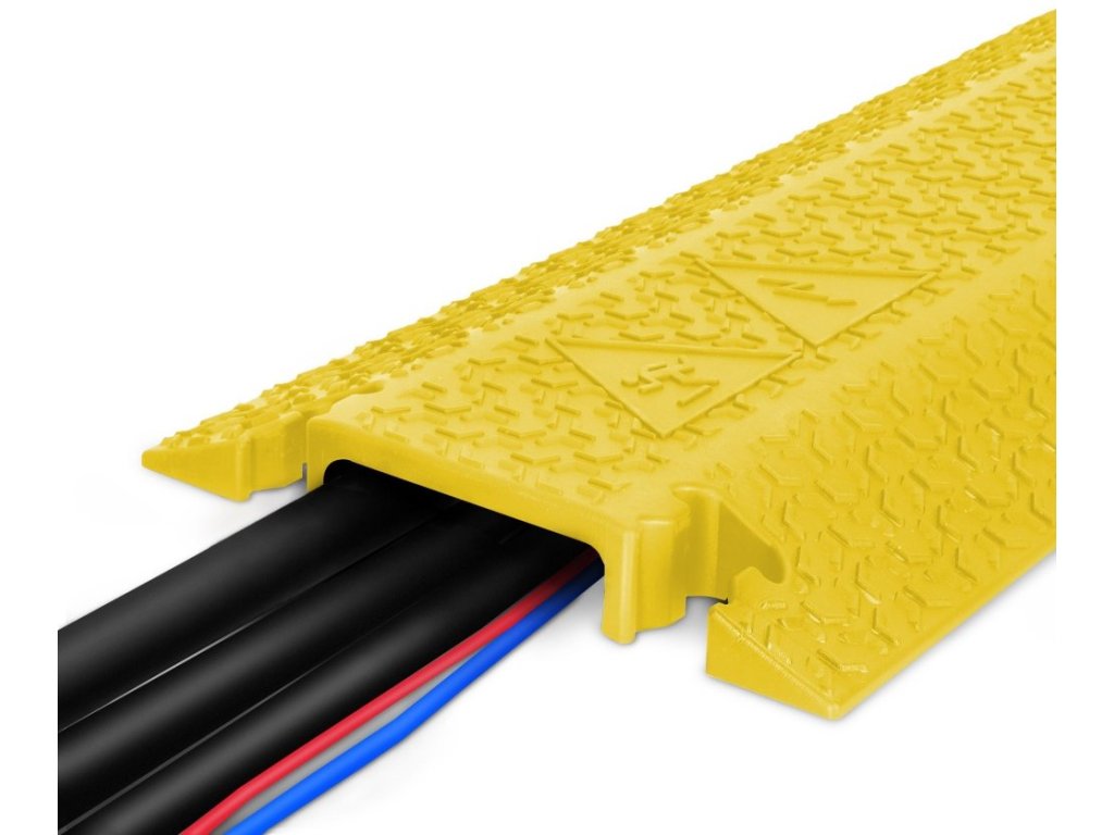 Najazd kablowy DEFENDER® XPRESS idealnie nadaje się do użytku wewnątrz i na zewnątrz budynków, na przykład na wystawach, targach, w centrach handlowych, na scenach, w studiach lub biurach. Kanał kablowy ma wymiary 100 x 30 mm i dlatego może być używany do różnych kabli i węży, na przykład do 30 kabli mikrofonowych lub zasilających lub do 5 węży ogrodowych. Przy nośności ok. 0,5 tony na powierzchnię 20 x 20 cm, najazdy kablowe XPRESS mogą unieść zwykłe samochody, wózki, rowery, wózki inwalidzkie i pieszych.