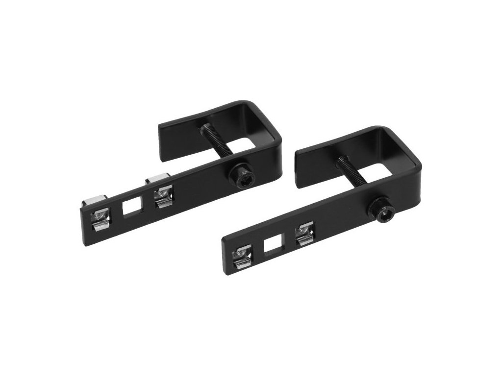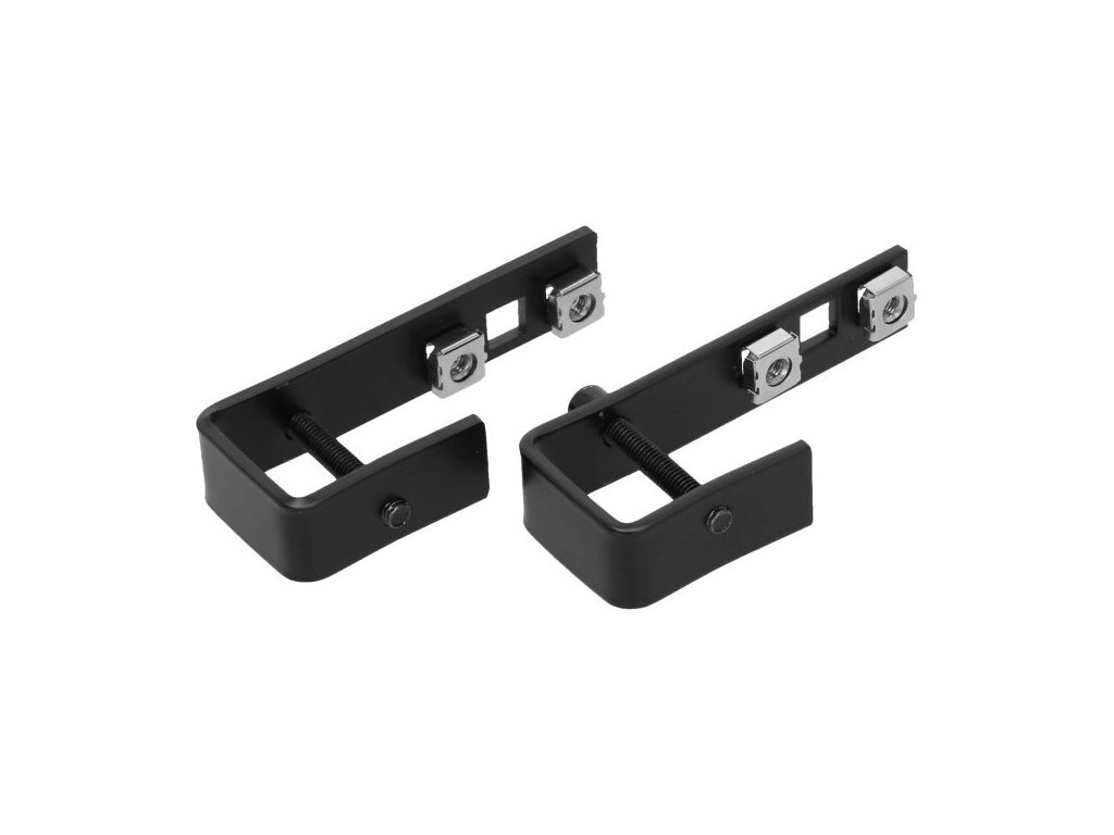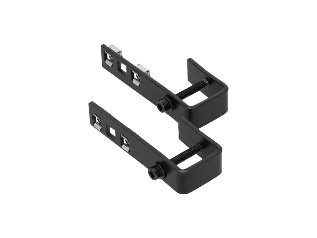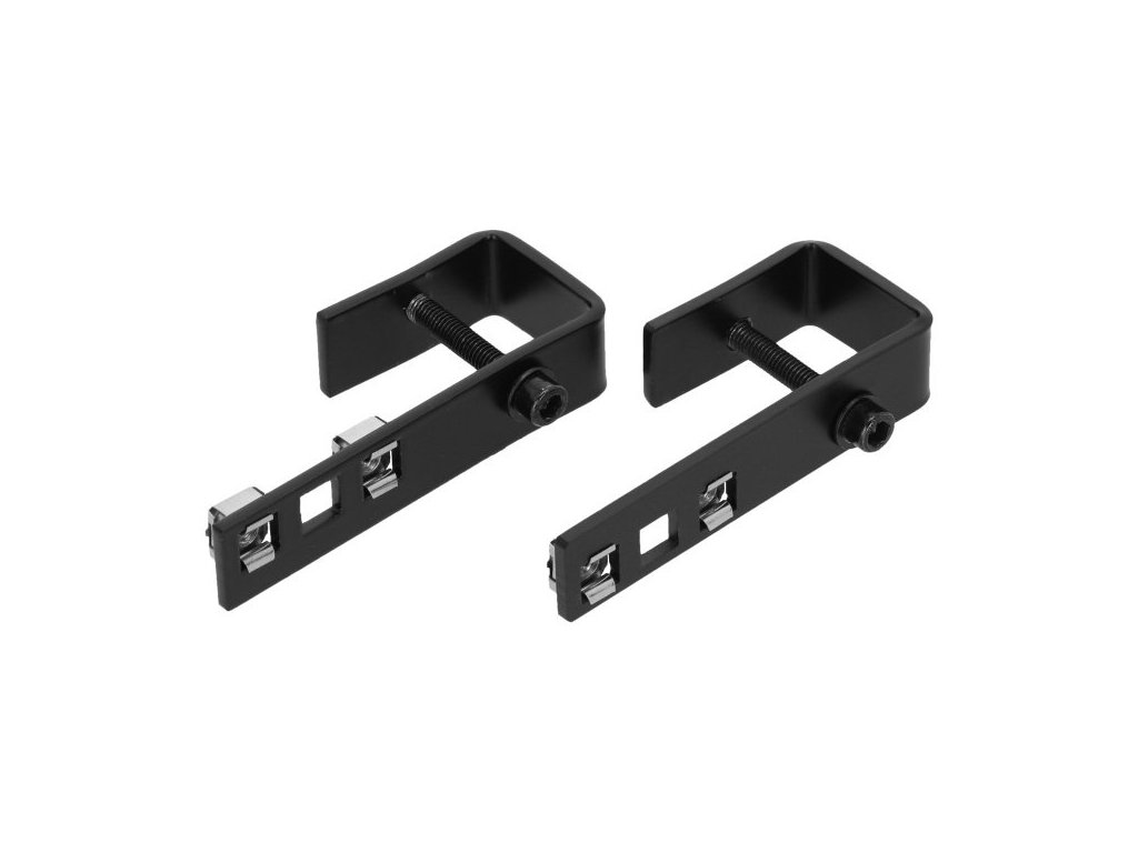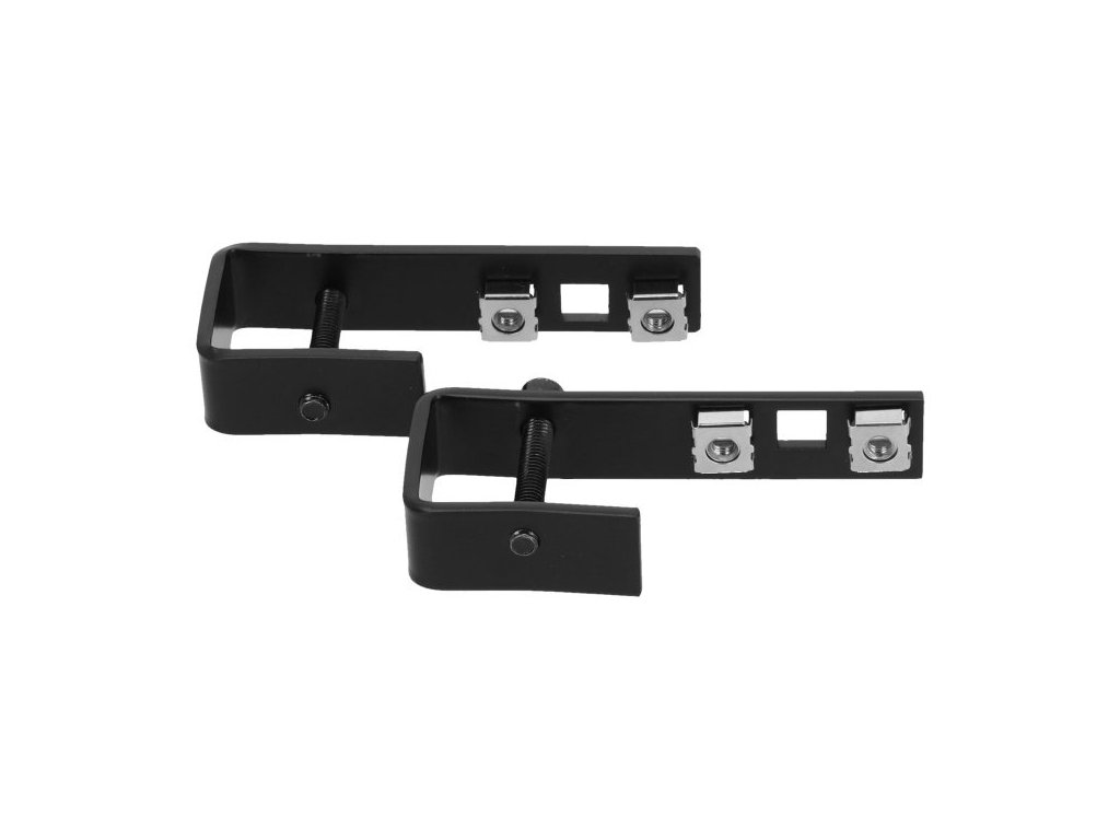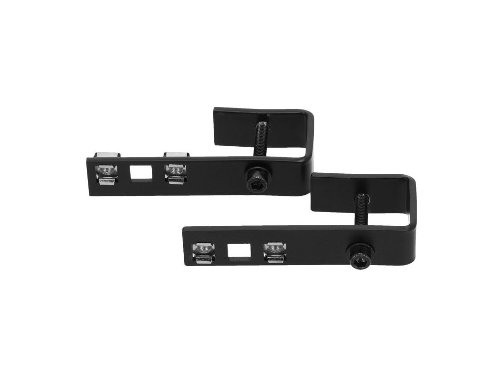 Wytrzymałe uchwyty są wykonane z malowanej proszkowo stali i za pomocą śrub mocujących można je łatwo i szybko przymocować do tylnej listwy stołu DJ FDJ T 01. Ponieważ są to dwa oddzielne uchwyty, możesz dostosować szerokość i położenie do swoich potrzeb. Montaż odbywa się za pomocą zintegrowanych nakrętek klatkowych.