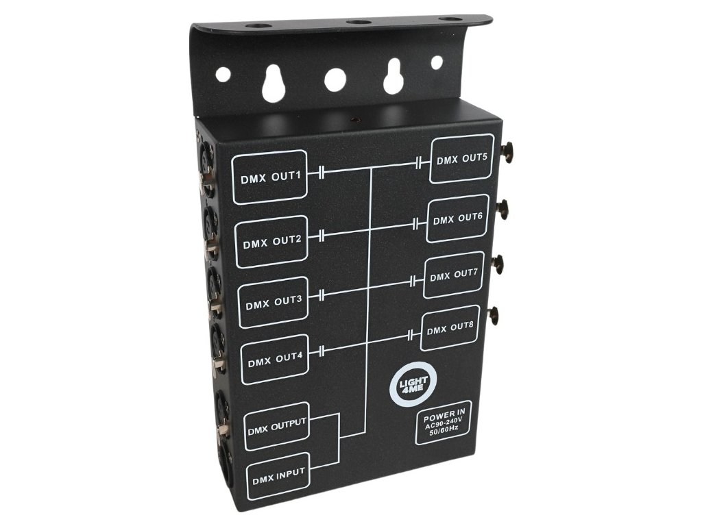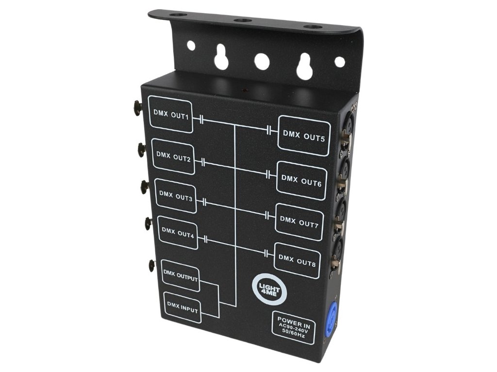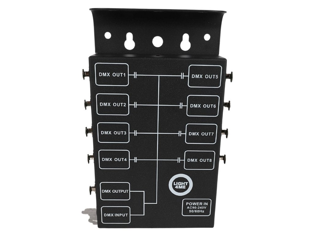 Wyjścia DMX: 8 do rozdzielenia sygnału z wejścia DMX + 1 do podłączenia kolejnego rozdzielacza