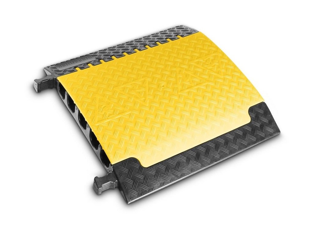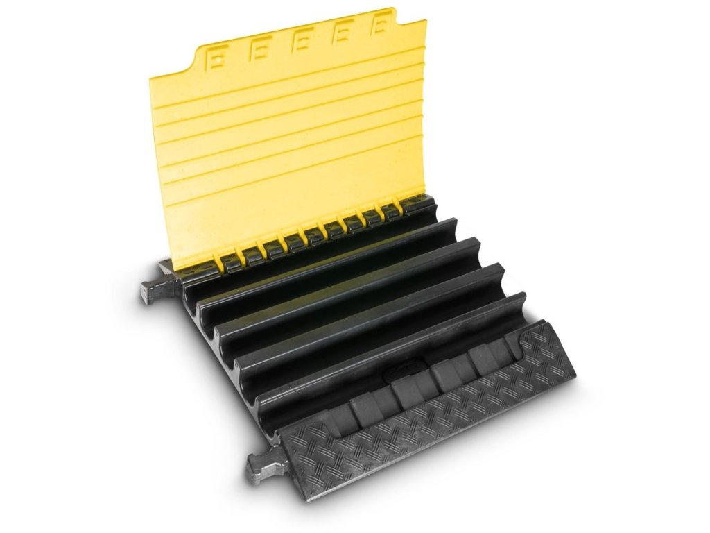Zintegrowane kołki łączące umożliwiają szybkie i łatwe łączenie poszczególnych elementów w stabilne prowadzenie najazdu kablowego. Oddzielnie dostępne końcówki zapewniają bezpieczne wprowadzanie i wyprowadzanie kabli. Najazdy Defender XXL o nośności 5 ton na powierzchni 25 x 30 cm są idealnym rozwiązaniem dla ciężkiego transportu towarowego, placów budowy, magazynów i targów, a także dla karnawałów i imprez muzycznych.