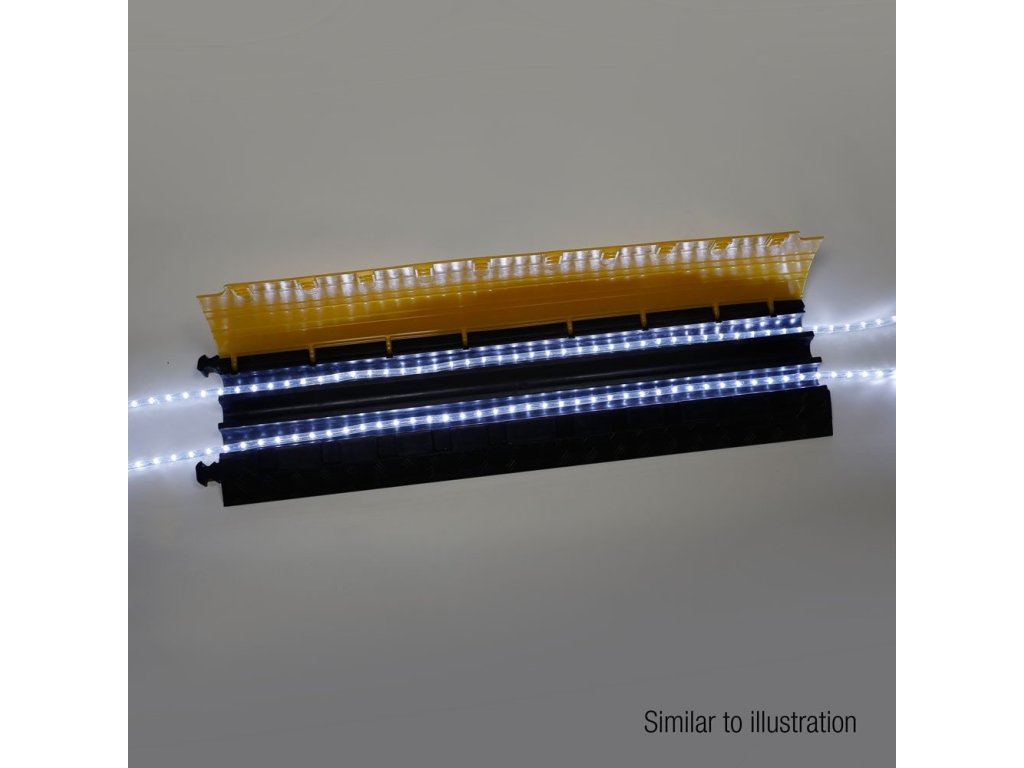 Doskonałe rozwiązanie do ochrony kabli i zapobiegania potknięciom: Innowacyjne najazdy kablowe z serii Defender LUX mają wysoce przezroczyste, żółte osłony, w których można układać świetlówki LED równolegle do kabli i innych przewodów. Najazdy kablowe Defender LUX zostały opracowane we współpracy z organizatorami imprez i operatorami dużych hal i terenów festiwalowych przy użyciu najnowocześniejszych technologii i zapewniają najwyższe możliwe bezpieczeństwo i widoczność nawet w ciemności, zarówno wewnątrz, jak i na zewnątrz.