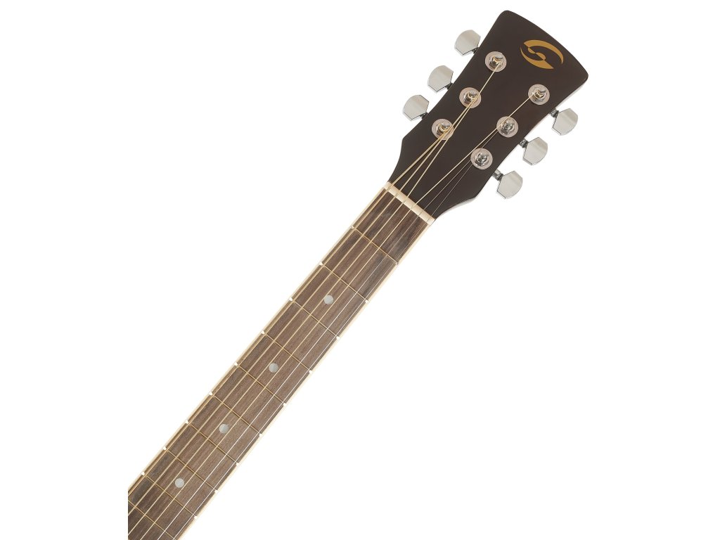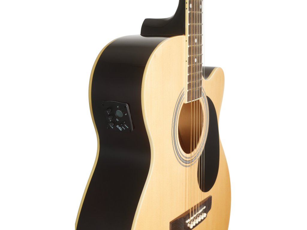 Warstwowy korpus tego instrumentu jest wykonany z płyty wierzchniej ze sklejki świerkowej oraz płyty spodniej i boków ze sklejki lipowej. Powierzchnię podstrunnicy dzieli dwadzieścia progów i znaczniki pozycji, które przede wszystkim ułatwiają początkującym orientację na powierzchni podstrunnicy. Struny są zakotwiczone w mostku z blackwoodu i chromowanych mechanikach stroikowych die-cast.