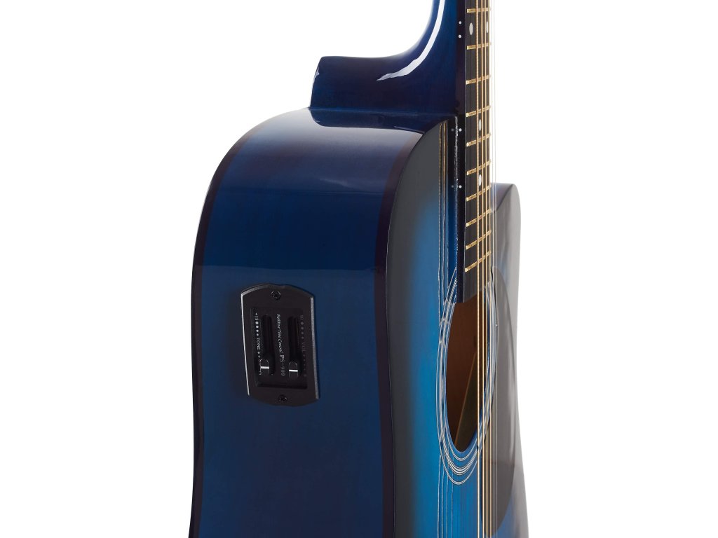 Możliwość nagłośnienia oferuje preamp z regulacją głośności i EQ wbudowany w bok gitary.