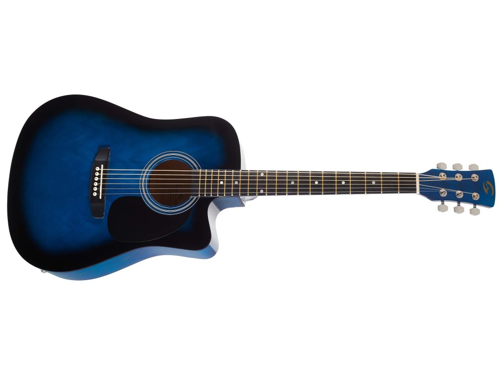 Warstwowy korpus tego instrumentu wykonany jest ze sklejki lipowej. Powierzchnię klonowej podstrunnicy dzieli dwadzieścia progów i znaczniki pozycji, które przede wszystkim ułatwiają początkującym orientację na powierzchni podstrunnicy. Struny są zakotwiczone w klonowym mostku i chromowanych mechanikach stroikowych Die-Cast. Design instrumentu urozmaicają tradycyjne elementy w postaci obwodowej lamówki, rozety i czarnego pickguardu.