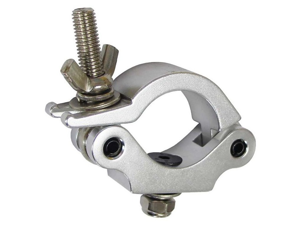 Profesjonalny srebrny uchwyt montażowy typu Omega od Stand4Me, przeznaczony do montażu wszystkich typów ciężkich reflektorów, efektów świetlnych i niektórych urządzeń scenicznych na różnych typach ramp i konstrukcji oświetleniowych systemu bi, tri, quadro. Zacisk przeznaczony jest do kratownic scenicznych o przekroju rury 48 - 51 mm. Dzięki zastosowaniu wygodnej śruby motylkowej i solidnej metalowej konstrukcji hak z zamontowanym urządzeniem wytrzymuje obciążenie do 200 kg.