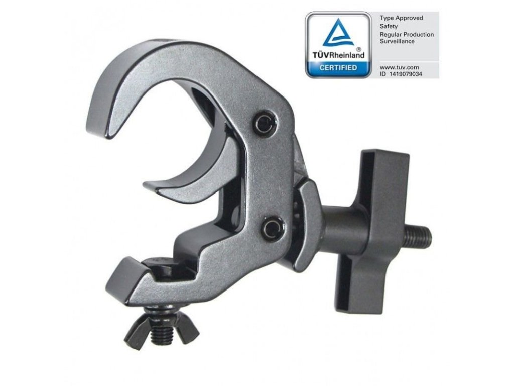 Profesjonalny, bardzo łatwy w użyciu uchwyt szybkozłączny typu Omega od Stand4Me. Uchwyt umożliwia mocowanie reflektorów, efektów świetlnych i innego wyposażenia scenicznego do różnych typów konstrukcji kratownicowych systemów bi, tri i quadro, z rurami o średnicy 48 - 51 mm. Uchwyt jest przykręcany bezpośrednio do urządzenia, co umożliwia jego szybki montaż na konstrukcji kratownicowej. Dzięki zastosowaniu praktycznych śrub motylkowych i solidnej metalowej konstrukcji, uchwyt wytrzymuje obciążenie do 250 kg!