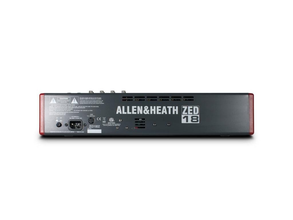 Dużą zaletą mikserów z serii ZED jest bez wątpienia liczba wejść i łatwa łączność z całą gamą urządzeń i instrumentów. Allen & Heath ZED-18 oferuje oprócz 10 kanałów mono z przedwzmacniaczami mikrofonowymi również 4 podwójne kanały stereo – możliwe jest podłączenie sygnału stereo za pomocą złączy ¼“ Jack oraz dodatkowego sygnału stereo za pomocą złączy RCA lub z wejścia audio USB. Dziesięć przedwzmacniaczy mikrofonowo-liniowych zapewnia wystarczającą liczbę wejść dla mikrofonów lub DI-boxów mniejszych zespołów.