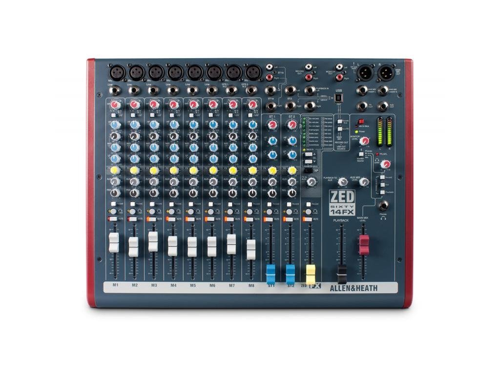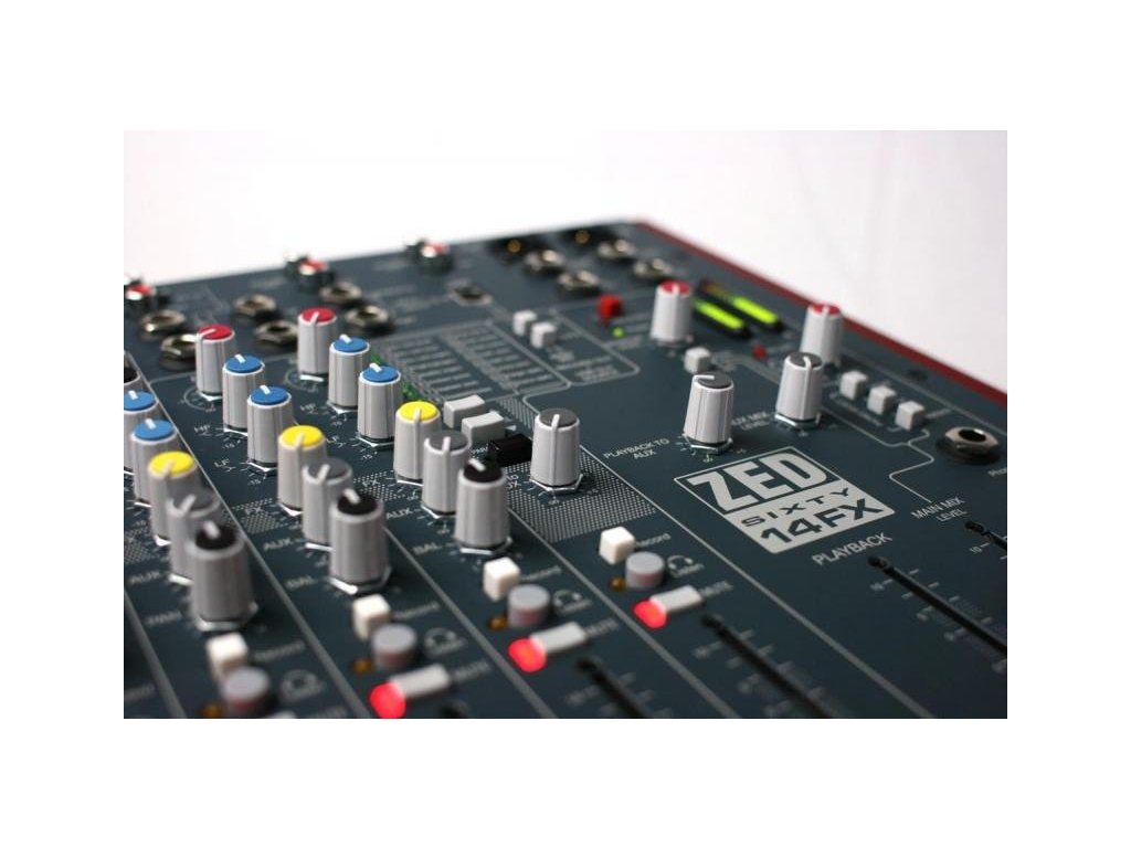 Allen&Heath ZED60-14FX • 14-kanałowy mikser • 8 wejść mikrofonowych / liniowych, 2 klasy FET o wysokiej impedancji • profesjonalne wysokiej jakości suwaki 60 mm • konfigurowalne USB stereo audio in / out • 2 wejścia stereo • niezależne 2-ścieżkowe wyjścia nagraniowe • 16 efektów wewnętrznych • główne wyjścia stereo XLR z insertami • kompleksowy monitoring • zasilanie fantomowe mikrofonu 48V • 12-segmentowe wskaźniki poziomu sygnału LED • interfejs audio USB (wejście/wyjście stereo • wyjście słuchawkowe • przełącznik poziomu DI z Gain Boost • gniazda neutrik XLR i 1/4 “ • wymiary 346x440x95 (mm) • waga 6,2 kg