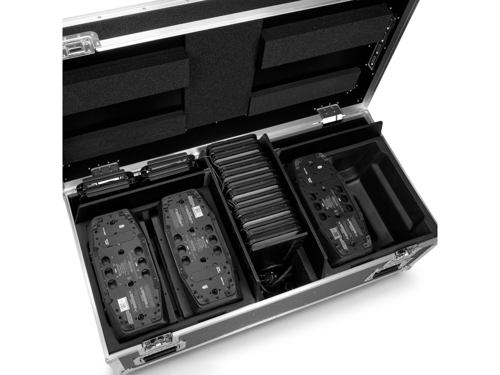 Ten profesjonalny kufer transportowy, wyprodukowany w Niemczech z wysokiej jakości sprzętu Adam Hall i sklejki brzozowej o grubości 9,5 mm, został zaprojektowany do bezpiecznego transportu i przechowywania do czterech sztuk oświetlenia Cameo ZENIT® W600 G2. Zintegrowane wkładki zapewniają idealne dopasowanie świateł.