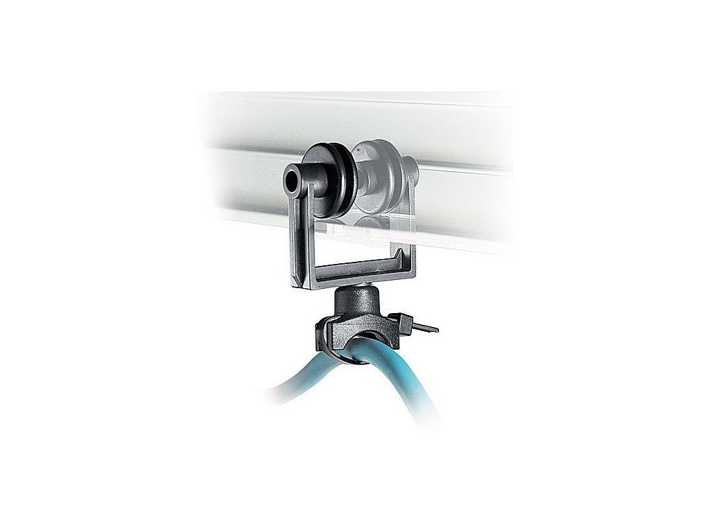 Zestaw 5 ruchomych wsporników służących do mocowania kabli do szyny. Nie potrzebują kółek, ponieważ przesuwają się po szynie i są odpowiednie do zwykłych kabli.