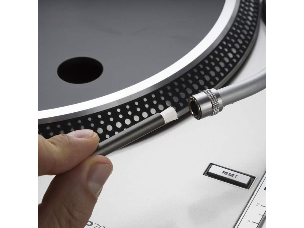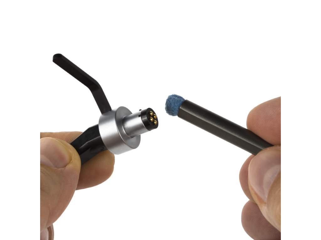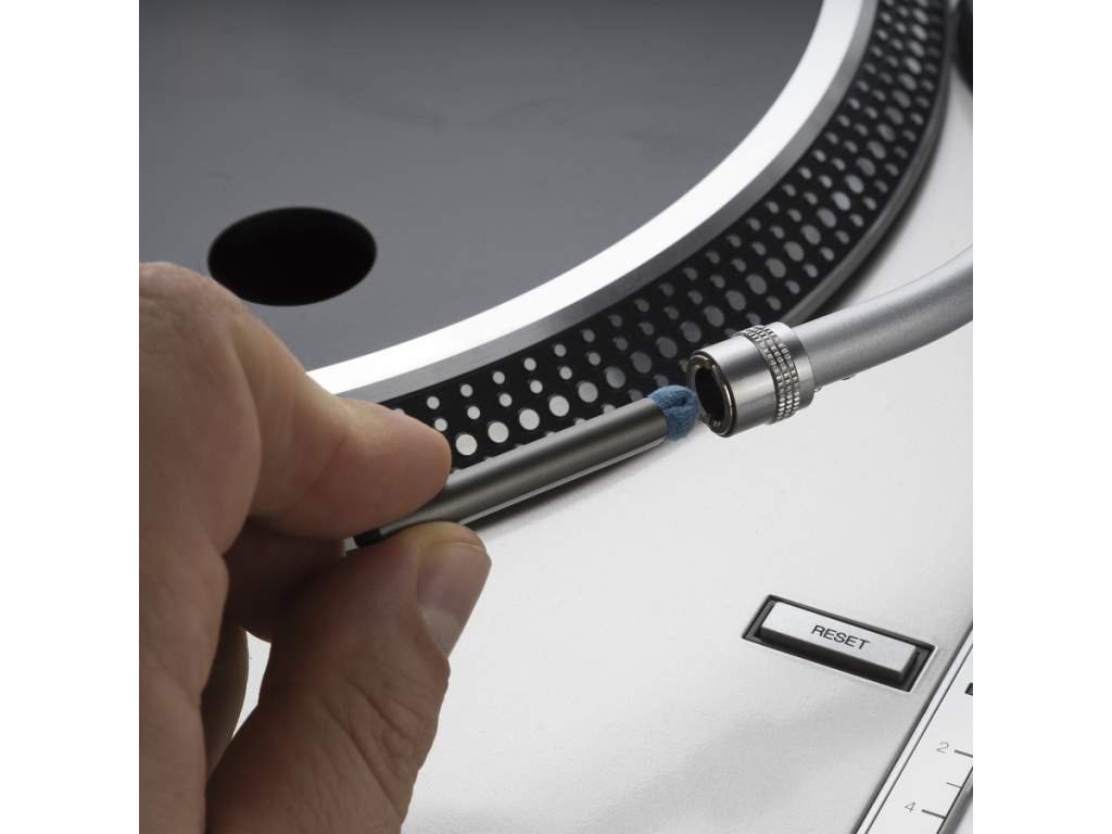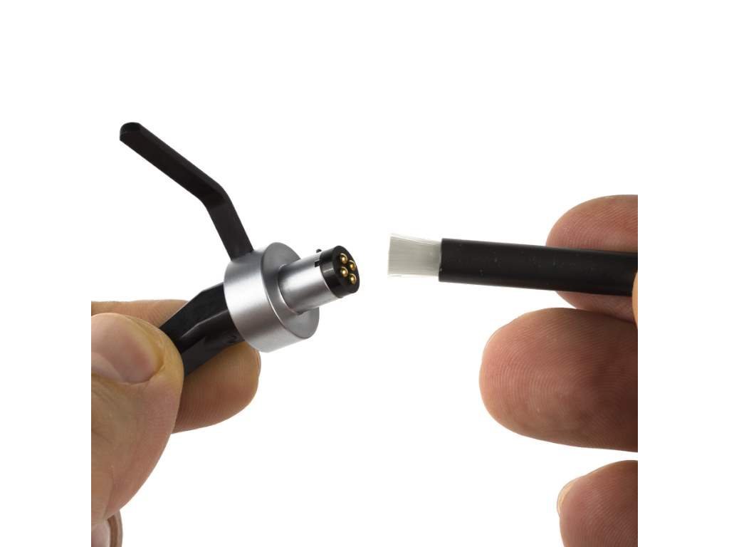 Specjalny zestaw czyszczący do gramofonów DJ i Hi-Fi. Zestaw zawiera dwie szczoteczki do czyszczenia ramienia i styków wkładki. Szczoteczki wykonane są ze specjalnych antystatycznych mikrowłókien, zestaw zawiera również preparat czyszczący dla jak najlepszego wyczyszczenia twojego gramofonu.