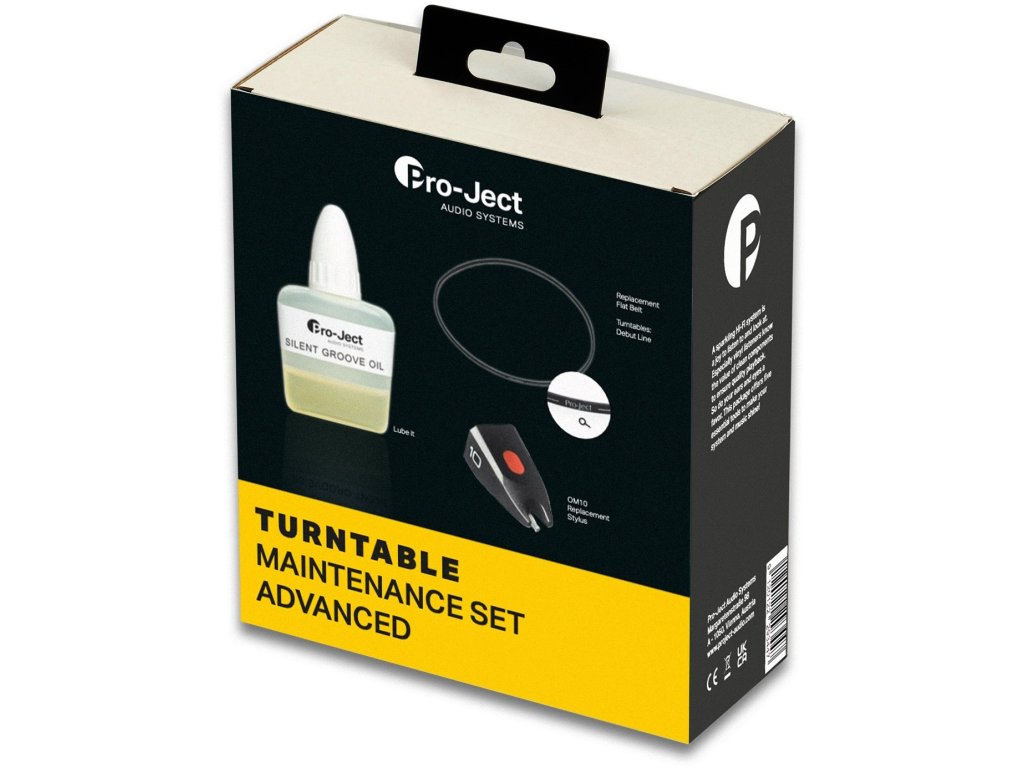 Trwałe utrzymanie jakości dźwięku i wydłużenie żywotności każdego gramofonu jest uwarunkowane regularną konserwacją. Podczas odtwarzania stopniowo zużywają się niektóre zasadnicze części gramofonu, niezbędne do bezproblemowego działania. Dotyczy to zwłaszcza igły wkładki, paska napędowego i łożyska, których żywotność jest ograniczona w zależności od czasu odtwarzania i środowiska pracy. W przypadku łożyska dochodzi do wysychania oleju smarującego, w przypadku paska napędowego do jego rozciągania lub nawet zerwania, a w przypadku wkładki do zużycia igły, co powoduje ograniczenie zdolności odczytu rowka i obniżenie jakości dźwięku. Zestaw Pro-Ject Maintenance Set Advanced zawiera wyżej wymienione specyficzne części niezbędne do prostej i szybkiej konserwacji i jest zoptymalizowany dla posiadaczy gramofonów Pro-Ject DEBUT III i jego modelowych wersji z wkładką Ortofon OM10. Konserwację może wykonać każdy użytkownik i nie wymaga ona specjalistycznej wiedzy ani dodatkowych ustawień lub narzędzi.