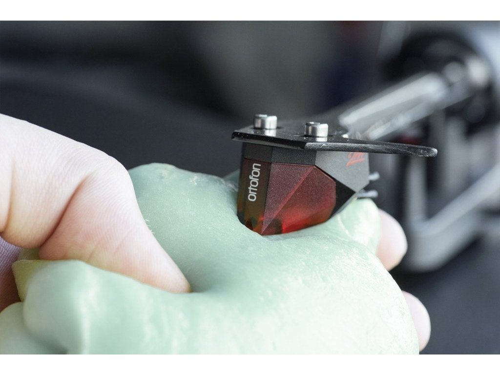 Podczas czyszczenia nie próbuj wycierać czyszczonych miejsc, jedynie delikatnie dociśnij masę do płyty winylowej lub bardzo ostrożnie dociśnij masę do igły gramofonowej.