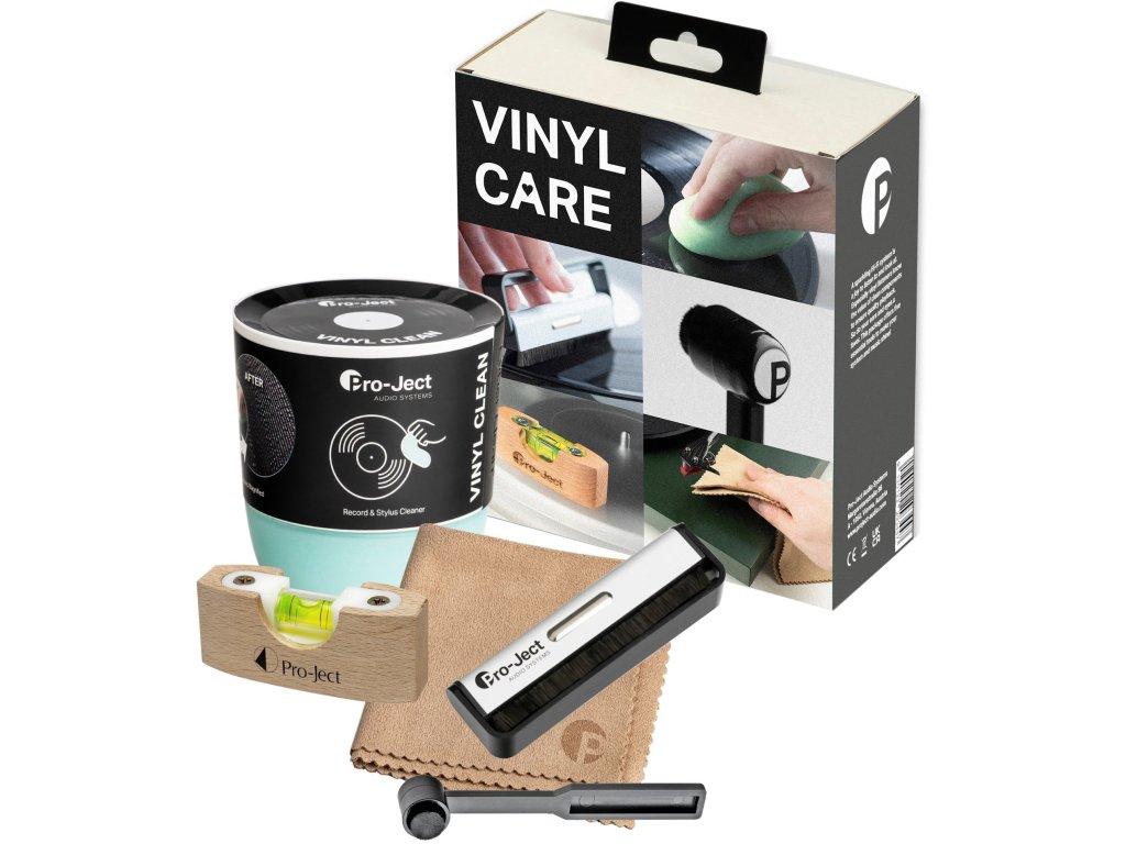 Kompleksowy zestaw czyszczący dla miłośników winylu, składający się ze szczoteczki Brush it do czyszczenia rowków płyt winylowych, szczoteczki Clean it do delikatnego czyszczenia igły gramofonowej, poziomicy Level it do łatwego poziomowania gramofonu, delikatnej ściereczki czyszczącej Cloth It i masy czyszczącej Vinyl Clean, za pomocą której można jeszcze skuteczniej wyczyścić zarówno cenne nagrania, jak i igłę gramofonową.