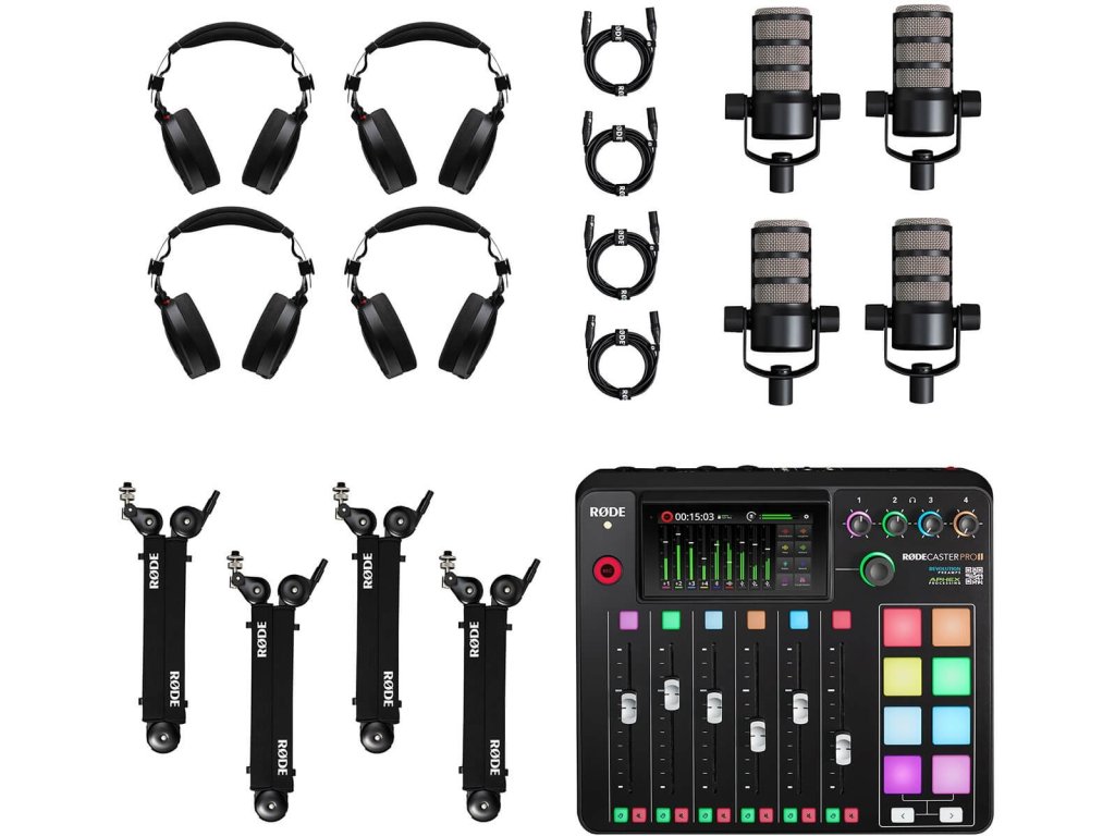 Four-person podcasting bundle to kompletny zestaw podcastowy dla czterech osób. Umożliwia prowadzenie rozmów i dyskusji, tworzenie postów w mediach społecznościowych i na YouTube, strumieniowanie online, tworzenie dowolnych treści audio i komunikację online za pomocą wszystkich popularnych platform. Zestaw zawiera wszystko, czego potrzebujesz. Nie musisz już nic dokupywać. Wystarczy po prostu podłączyć i cieszyć się doskonałym dźwiękiem i łatwością użytkowania.