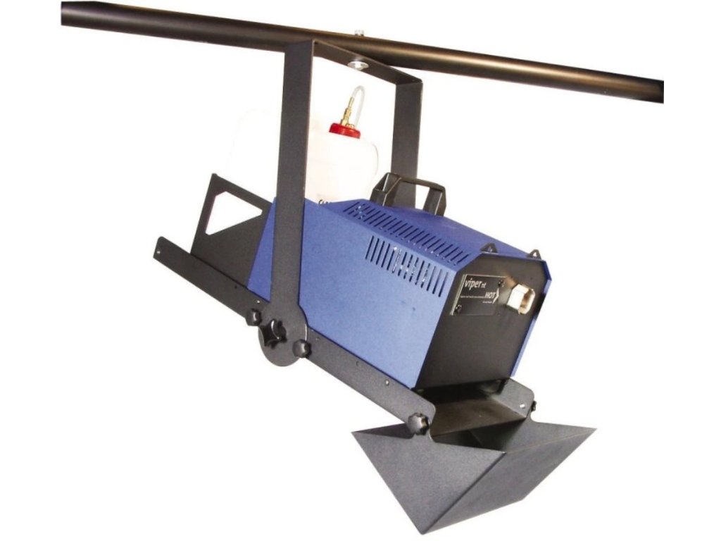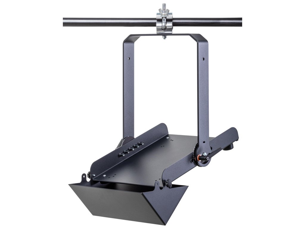Uchwyt wiszący z platformą i zbiornikiem na płyny do wytwornic Look. Idealny do montażu na stałych instalacjach lub scenie. Miska ociekowa jest trwale połączona z jednostką. Zapobiega to obrażeniom osób lub uszkodzeniu sprzętu, np. w przypadku wycieku płynu z pojemnika. Skala kąta nachylenia 90 stopni.