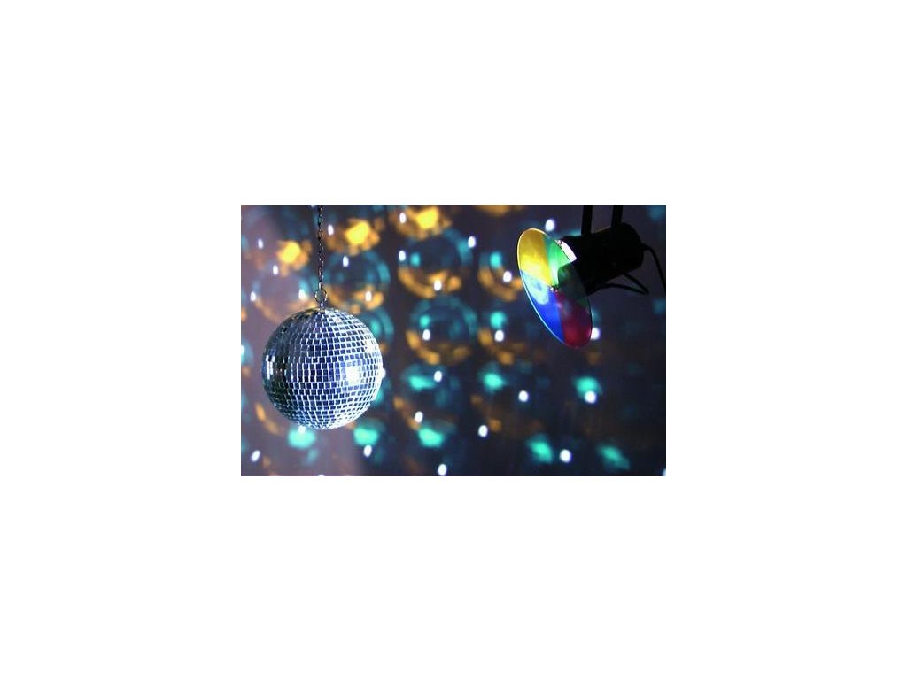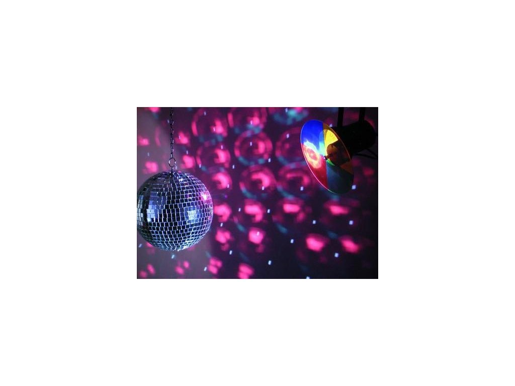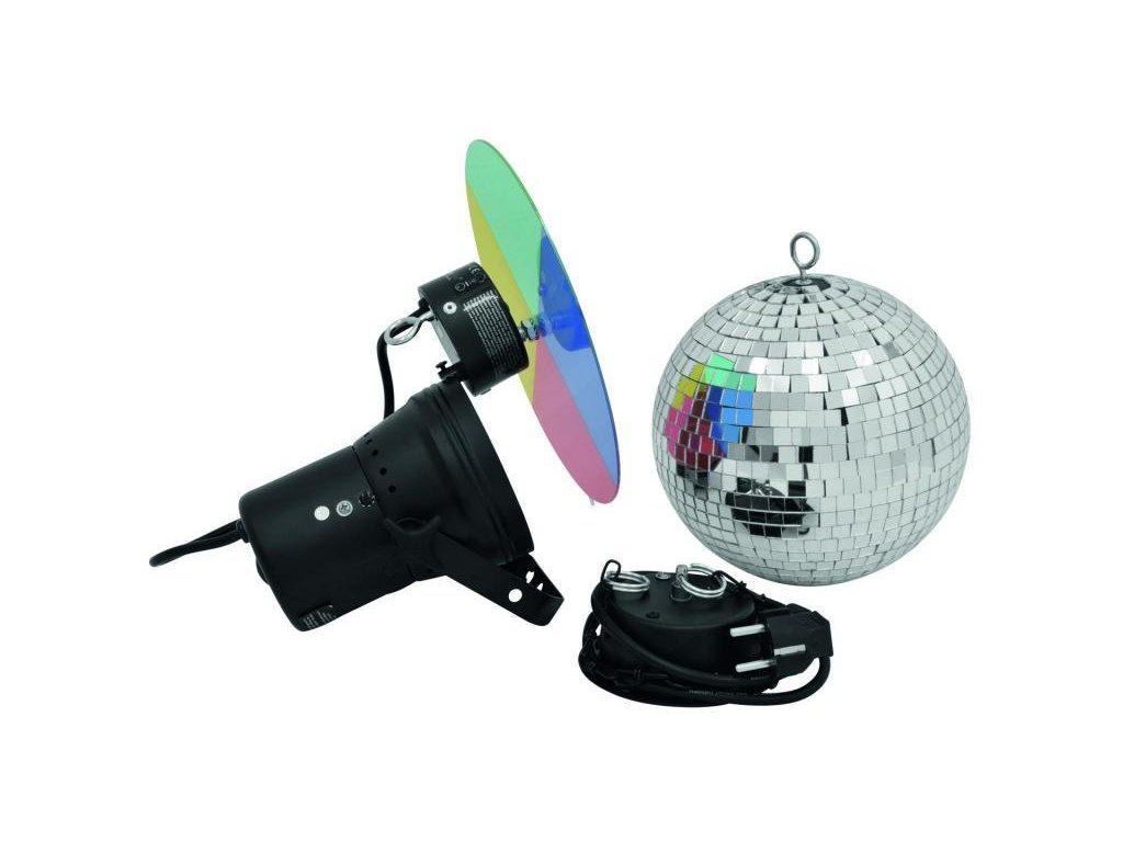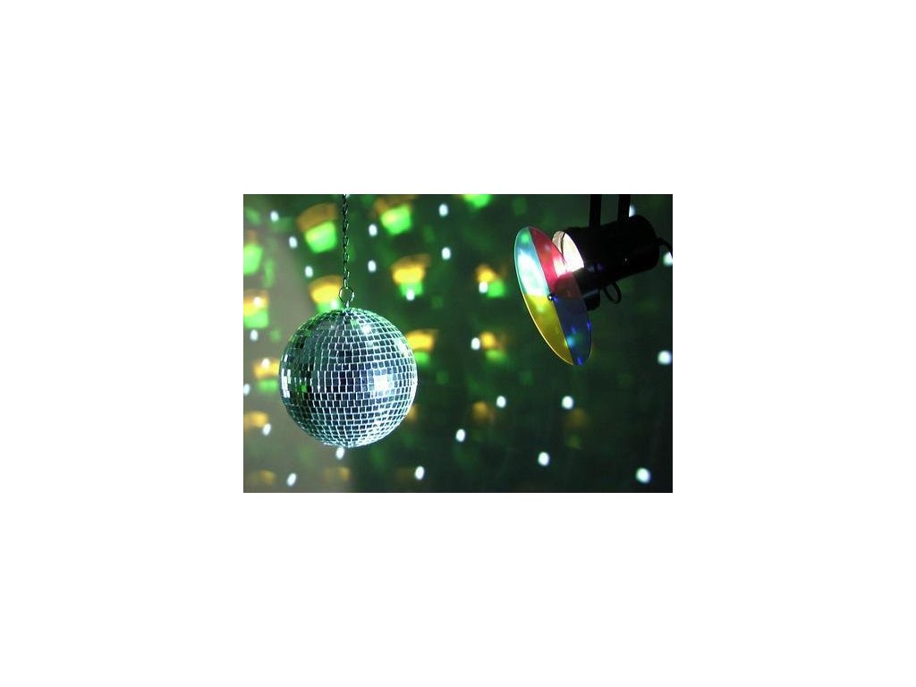 Zestaw zawiera lustrzaną kulę o średnicy 20 cm i motorek 1,5 obrotu/min, łańcuch do mocowania kuli 33 cm, Eurolite PAR 36 T czarny, żarówkę PAR 36, 6V/30W 200h VNSP, obrotowy zmieniacz 4 kolorów, który przymocowuje się do korpusu reflektora. Wystarczy tylko rozpakować i można zacząć instalować. Idealny nowoczesny prezent.