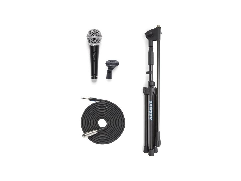 Zestaw mikrofonowy: mikrofon dynamiczny R21, uchwyt do statywu, trójramienny, w pełni metalowy statyw MK10, kabel mikrofonowy 5,5 m ze złączem Jack i XLR.
