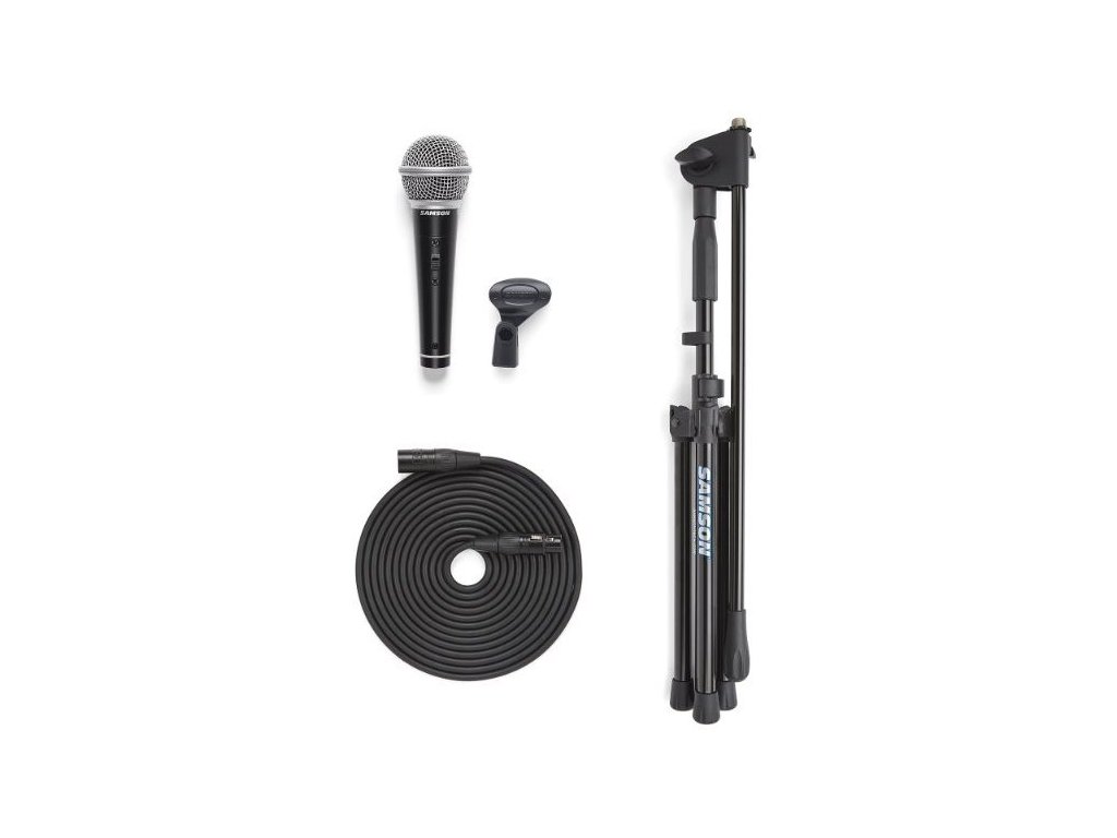 Zestaw mikrofonowy: mikrofon dynamiczny R21, uchwyt do statywu, trójramienny, całkowicie metalowy statyw MK10, kabel mikrofonowy 5,5 m ze złączem XLR-XLR.
