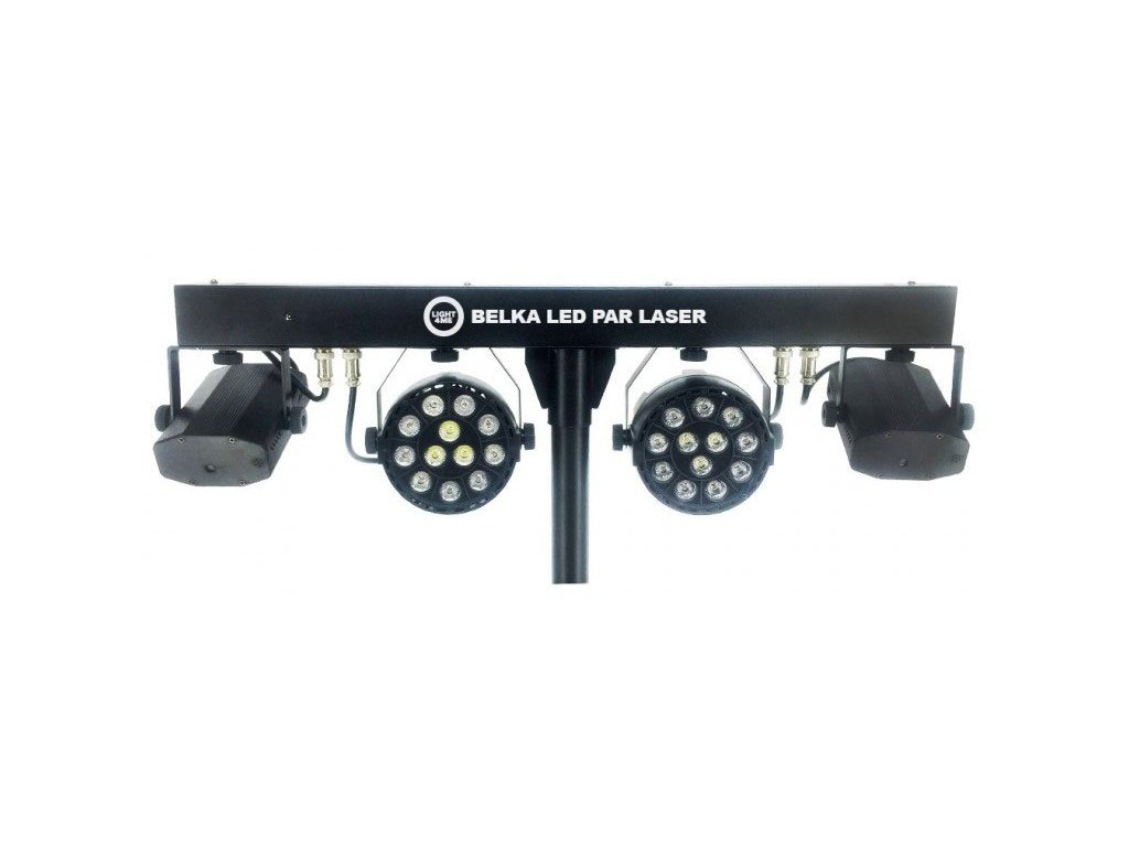 LIGHT4ME Laser i LED PAR to przenośny zestaw oświetleniowy „T” ze zdalnym sterowaniem bezprzewodowym, który zawiera poprzeczkę z dwoma reflektorami PAR i dwoma laserami na statywie. Zestaw jest idealny na mniejsze sceny, do klubów tanecznych i dyskotek, a także na wesela, imprezy firmowe lub urodziny.