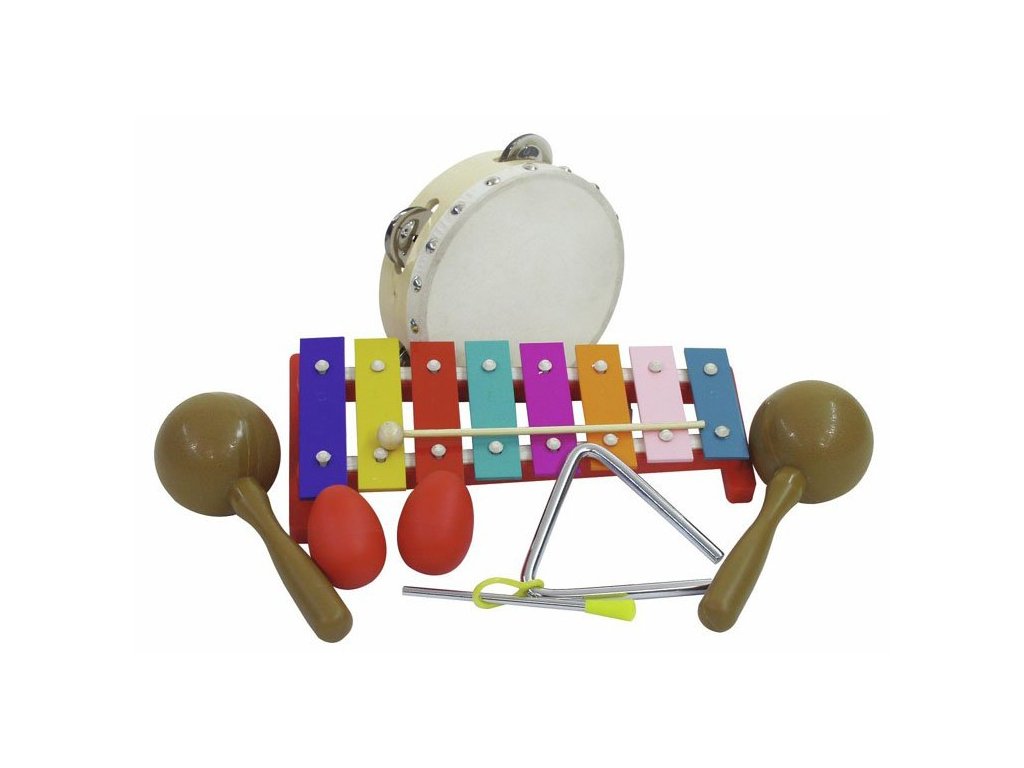 Kolekcja instrumentów perkusyjnych, 7 sztuk. Bezbarwne lakierowanie.