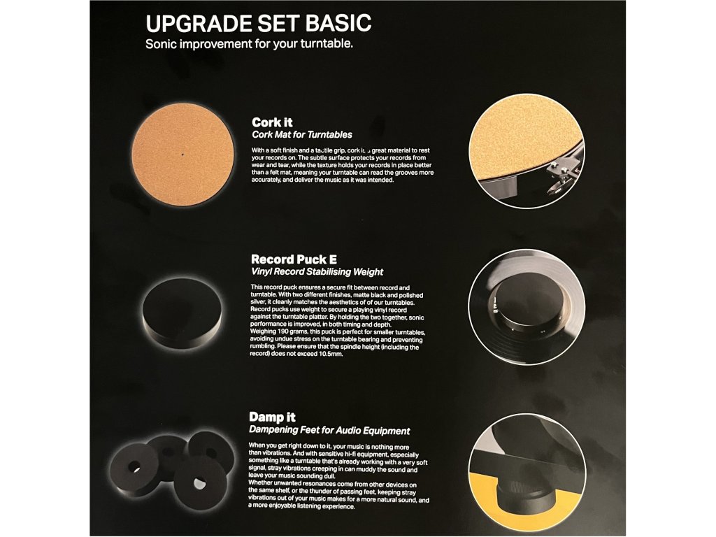 Jeśli chcesz poprawić jakość dźwięku swojego gramofonu Pro-Ject, ten zestaw akcesoriów staje się dla Ciebie niezbędny. Zawartość zestawu jest uniwersalna dla wszystkich modeli gramofonów Pro-Ject i większości gramofonów innych marek. Korzystanie z akcesoriów nie wymaga specjalistycznej wiedzy ani konfiguracji, jest proste w obsłudze, a korzyści dźwiękowe są słyszalne i natychmiastowe.