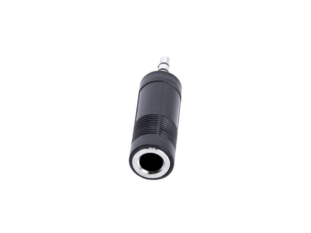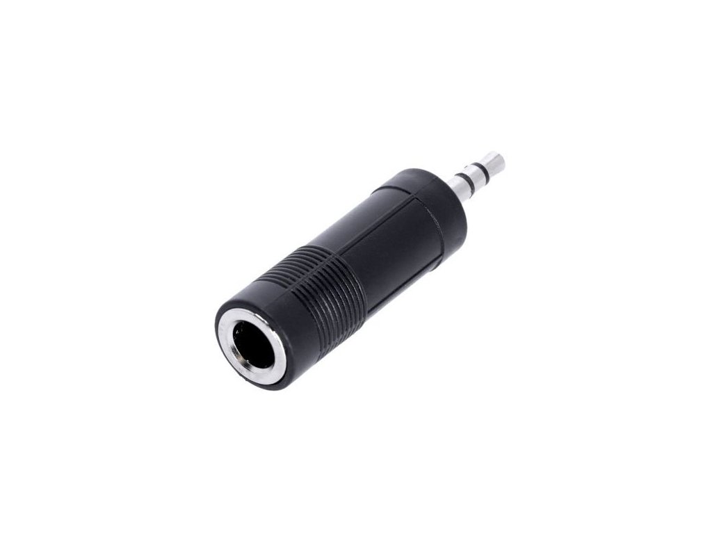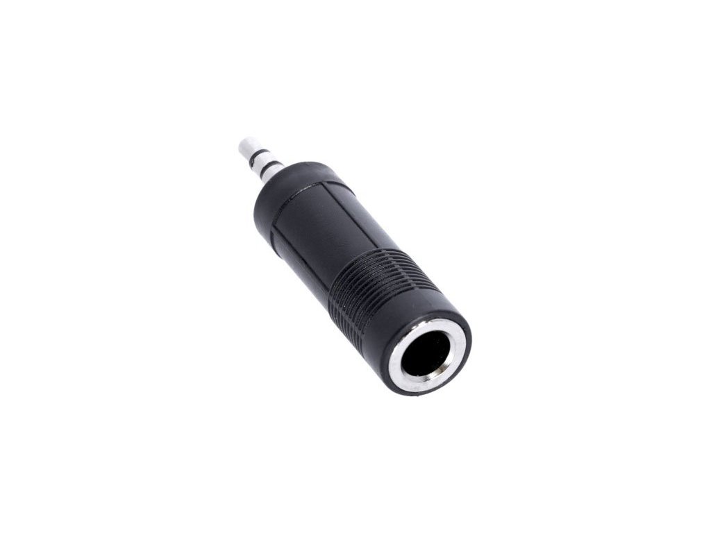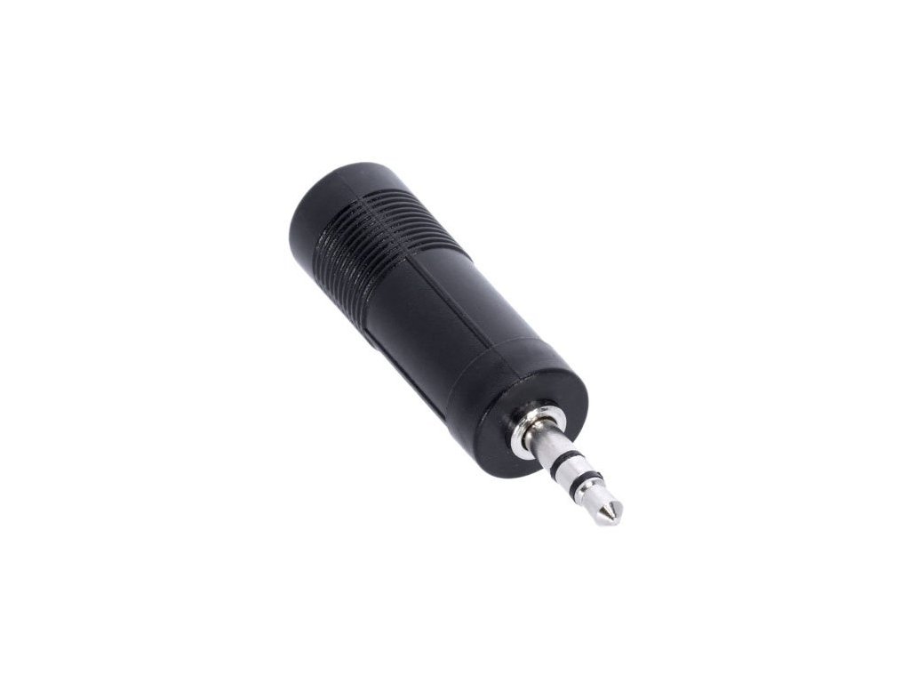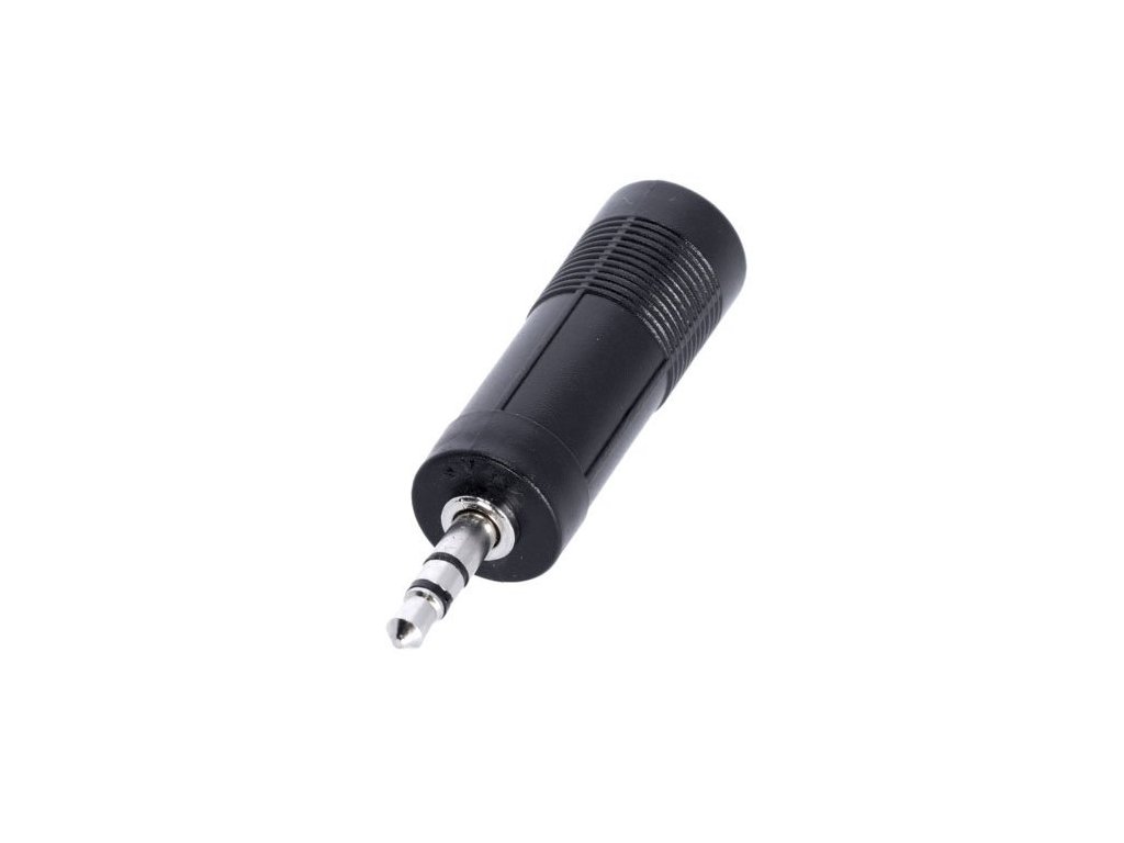 Adapter 6,3 mm jack stereo żeński na 3,5 mm jack stereo męski.