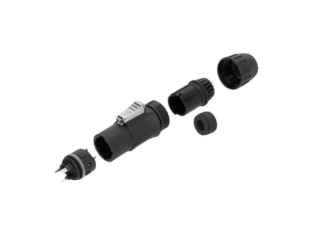 Trzypinowe złącze zasilania zastępuje złącza IEC tam, gdzie potrzebne jest bardzo solidne rozwiązanie blokujące. Złącze 4 STAR C PM TCON jest kompatybilne ze wszystkimi standardowymi gniazdami powerCON TRUE1-TOP i jest solidnym i dobrym wyborem do zasilania urządzeń z blokowanym podłączeniem zasilania. Obciążalność do 16 A / 250 V AC. Ochrona IP65 po dokręceniu.