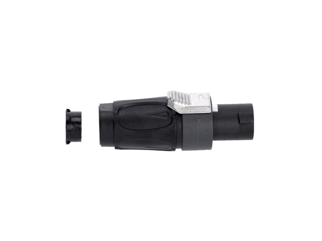 Standard w kolorze czarnym do podłączania głośników. Klasyka, jeśli chodzi o złącza, które muszą być kompatybilne z systemem speakON. Ze stykami śrubowymi, ale także z możliwością lutowania.