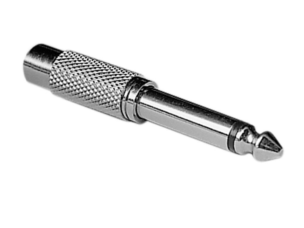 Metalowy adapter Mono RCA żeński na 6.3 mm Mono Jack męski.