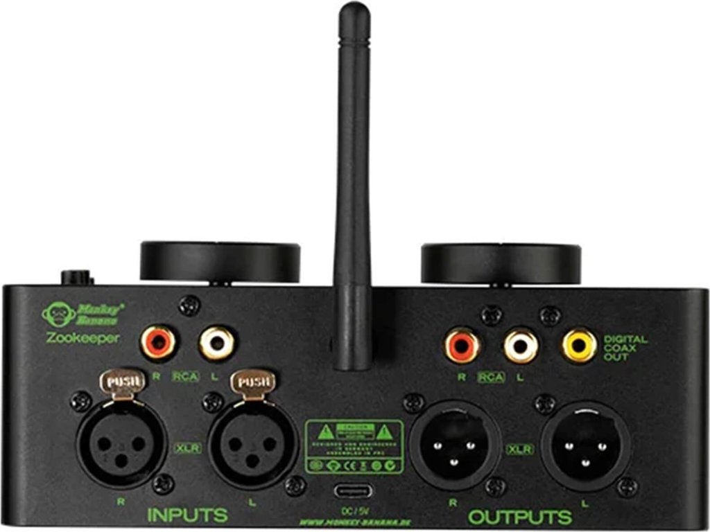Zookeeper to urządzenie, które integruje trzy podstawowe funkcje: kontroler monitorowy, dystrybutor sygnału i urządzenie do strumieniowania. Możesz podłączyć go za pomocą wejść liniowych, Bluetooth i USB-C. Sygnał wyjściowy można pobierać z regulowanych wyjść liniowych, cyfrowego S/PDIF i USB-C.