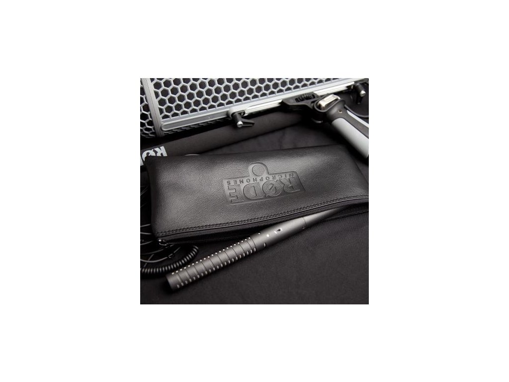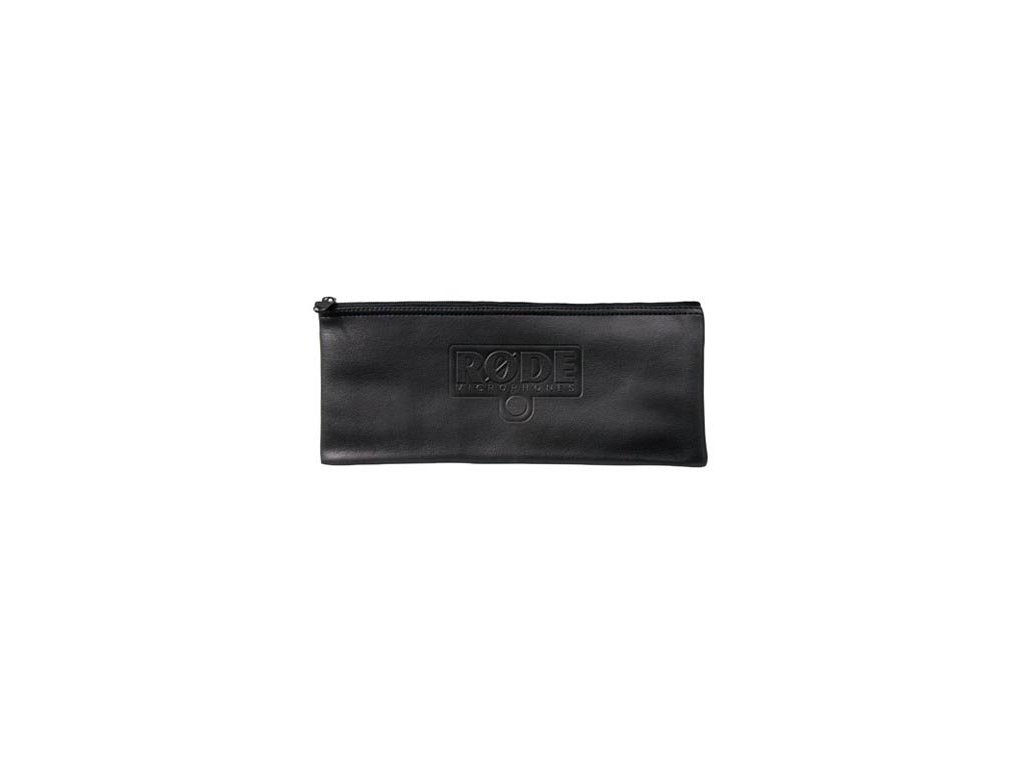 Skórzane etui na mikrofon z zamkiem błyskawicznym.